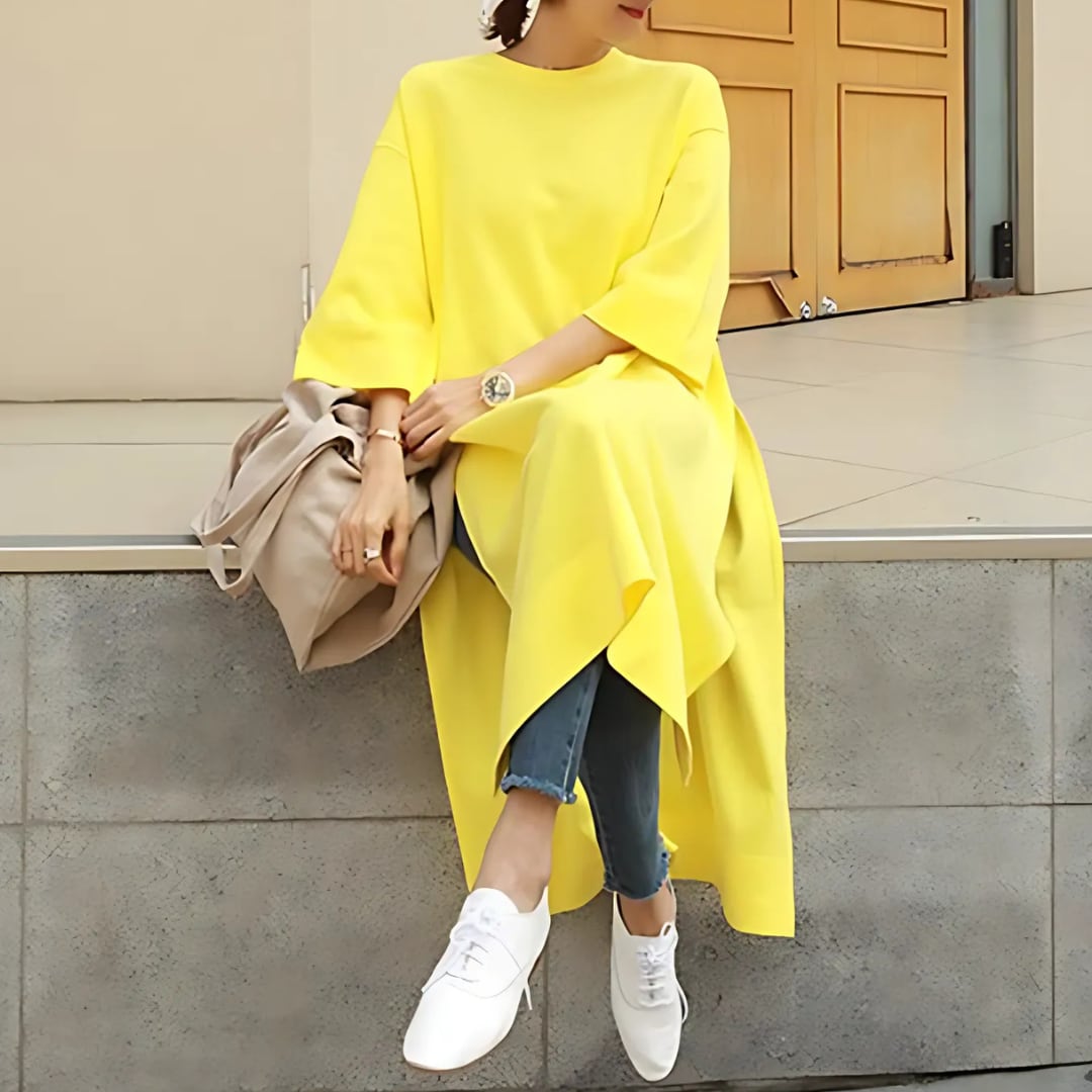 ゆったりとしたシルエットが魅力のクルーネック7分丈ワンピース。ラフな着心地ながら、上品なAラインシルエットで着るだけでこなれた印象に。一枚でサマになるデザインは、デイリーユースからカジュアルなデートまで幅広いシーンで活躍します。シンプルながらも存在感があり、合わせる小物次第で様々なスタイルを楽しめます。 SIZE: 【S】 肩幅 53cm 胸囲 100cm 着丈 105cm 袖丈 30cm 【M】 肩幅 54cm 胸囲 104cm 着丈 106cm 袖丈 31cm 【L】 肩幅 55cm 胸囲 108cm 着丈 107cm 袖丈 32cm 【XL】 肩幅 56cm 胸囲 112cm 着丈 108cm 袖丈 33cm ※採寸方法により1~3cmの誤差がある場合がございます COLOR: YELLOW 素材:綿100% ※こちらの商品は海外店舗より直接発送となる為、ご入金から2週間-4週間前後でお届け致します。 No: I-25005 ⋱ Please follow ⋰ https://www.instagram.com/_irophoria_ ✦注意事項✦ ・タイミングによっては 商品在庫切れにより 注文キャンセルとさせていただく恐れもございますので、 予めご了承くださいませ。 ・海外製品のため日本とは製造基準が異なります。 ご理解のうえご購入ください。 ・商品の色味は、お持ちのデバイス画面により 実物と若干異なる場合がございます。 ・イメージ違いやサイズ等、お客様都合による交換、返品、 キャンセルは対応出来かねます。 ———————————— ご購入前にこちらをお読みください → https://shop.irophoria.tokyo/about ————————————