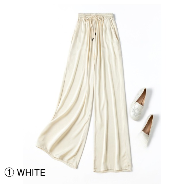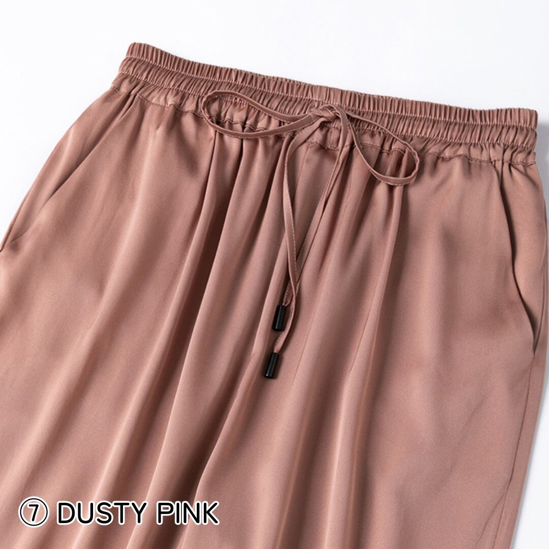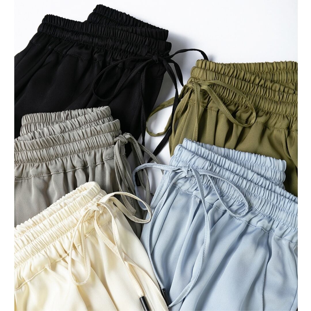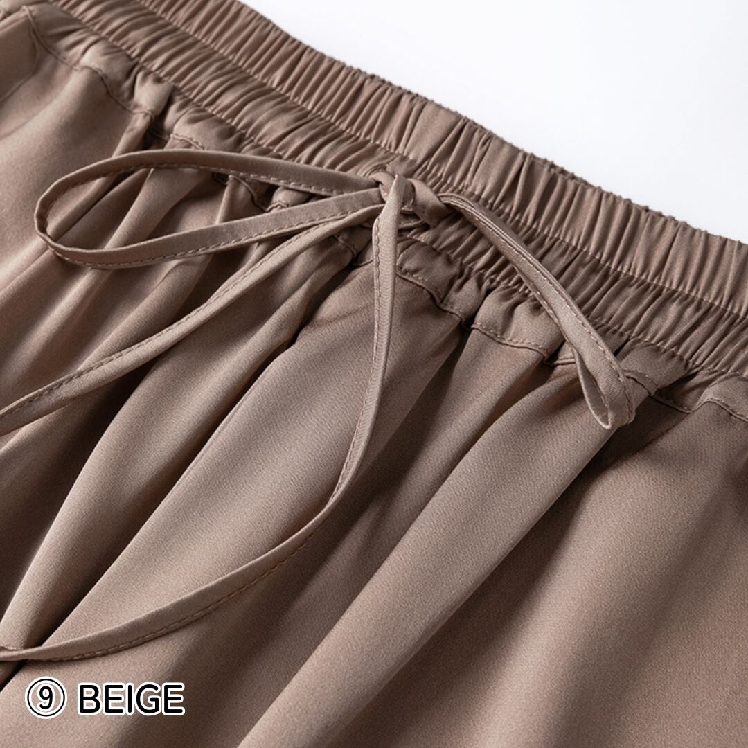 ゆったりとしたワイドシルエットが体型カバーも叶えてくれるイージーパンツ。動きやすさと着心地の良さを両立し、一日中快適に過ごせます。シンプルなデザインで、どんなトップスとも相性抜群。様々なコーディネートを楽しんでいただけます。通気性バツグンで、暑い季節でも快適に着用可能です。 SIZE: 【L】 ウエスト:64--110cm ヒップ:116cm 着丈:97cm 【XL】 ウエスト:64--114cm ヒップ:118cm 着丈:103cm ※採寸方法により1~2cmの誤差がある場合がございます COLOR: ① WHITE ② LIGHT BLUE ③ OLIVE ④ ICE GRAY ⑤ BLACK ⑥ NAVY ⑦ DUSTY PINK ⑧ SLATE GRAY ⑨ BEIGE ⑩ GREEN 素材:スパンシルク 93% スパンデックス(ポリウレタン)7% ※本商品は繊細な桑絹シルク素材を使用しております。初回のお洗濯でわずかな色落ちや縮みが生じることがありますが、これは素材の特性によるものであり不良ではございません。お手入れの際は、必ず冷水での手洗い・陰干しをお願いいたします。 ※IROPHORIAではお客様のご注文を受け1点1点商品を製作・取り寄せしております。 そのため、ご入金から発送までに1週間〜3週間前後お時間をいただきます。 余裕をもってのお買い求めをお願い致します。 No: I25025 ✦注意事項✦ ・タイミングによっては 商品在庫切れにより 注文キャンセルとさせていただく恐れもございますので、 予めご了承くださいませ。 ・海外製品のため日本とは製造基準が異なります。 ご理解のうえご購入ください。 ・商品の色味は、お持ちのデバイス画面により 実物と若干異なる場合がございます。 ・イメージ違いやサイズ等、お客様都合による交換、返品、 キャンセルは対応出来かねます。 ———————————— ご購入前にこちらをお読みください → https://shop.irophoria.tokyo/about ————————————