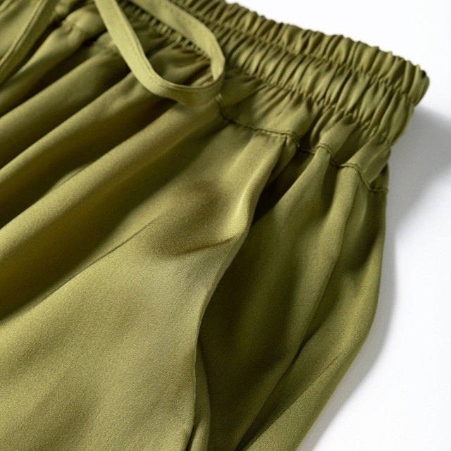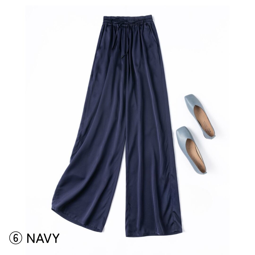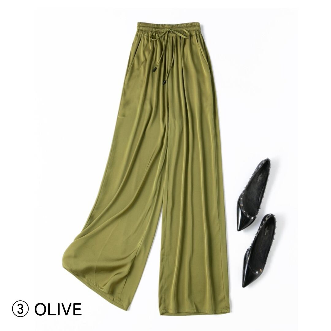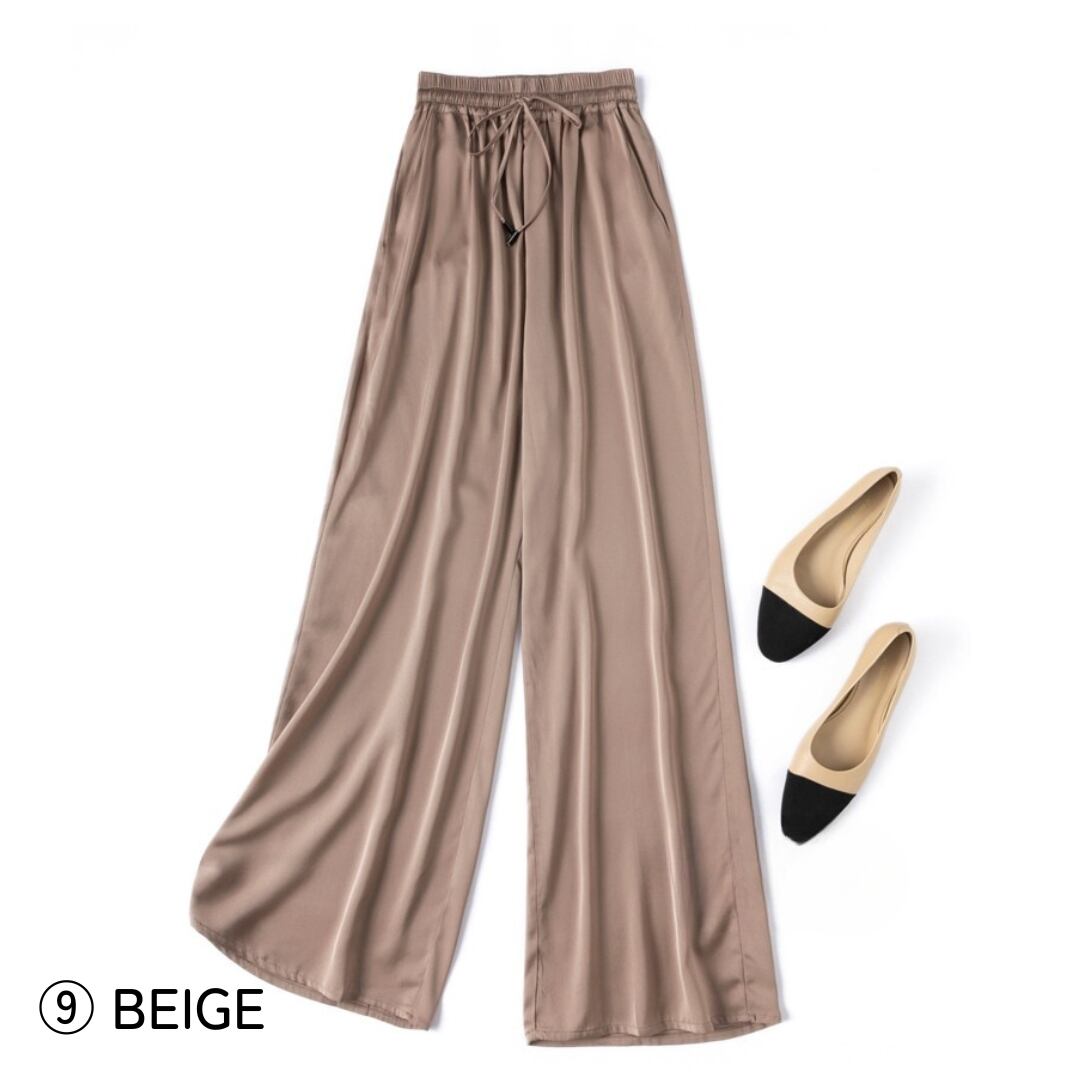 ゆったりとしたワイドシルエットが体型カバーも叶えてくれるイージーパンツ。動きやすさと着心地の良さを両立し、一日中快適に過ごせます。シンプルなデザインで、どんなトップスとも相性抜群。様々なコーディネートを楽しんでいただけます。通気性バツグンで、暑い季節でも快適に着用可能です。 SIZE: 【L】 ウエスト:64--110cm ヒップ:116cm 着丈:97cm 【XL】 ウエスト:64--114cm ヒップ:118cm 着丈:103cm ※採寸方法により1~2cmの誤差がある場合がございます COLOR: ① WHITE ② LIGHT BLUE ③ OLIVE ④ ICE GRAY ⑤ BLACK ⑥ NAVY ⑦ DUSTY PINK ⑧ SLATE GRAY ⑨ BEIGE ⑩ GREEN 素材:スパンシルク 93% スパンデックス(ポリウレタン)7% ※本商品は繊細な桑絹シルク素材を使用しております。初回のお洗濯でわずかな色落ちや縮みが生じることがありますが、これは素材の特性によるものであり不良ではございません。お手入れの際は、必ず冷水での手洗い・陰干しをお願いいたします。 ※IROPHORIAではお客様のご注文を受け1点1点商品を製作・取り寄せしております。 そのため、ご入金から発送までに1週間〜3週間前後お時間をいただきます。 余裕をもってのお買い求めをお願い致します。 No: I25025 ✦注意事項✦ ・タイミングによっては 商品在庫切れにより 注文キャンセルとさせていただく恐れもございますので、 予めご了承くださいませ。 ・海外製品のため日本とは製造基準が異なります。 ご理解のうえご購入ください。 ・商品の色味は、お持ちのデバイス画面により 実物と若干異なる場合がございます。 ・イメージ違いやサイズ等、お客様都合による交換、返品、 キャンセルは対応出来かねます。 ———————————— ご購入前にこちらをお読みください → https://shop.irophoria.tokyo/about ————————————
