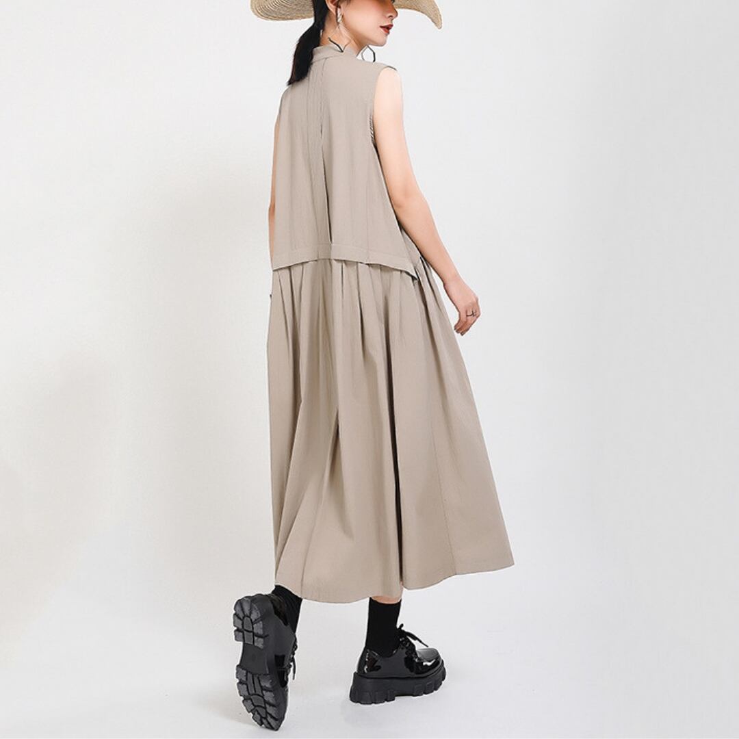 Stand Collar A-Line Maxi Shirt Dress - BEIGE I25031