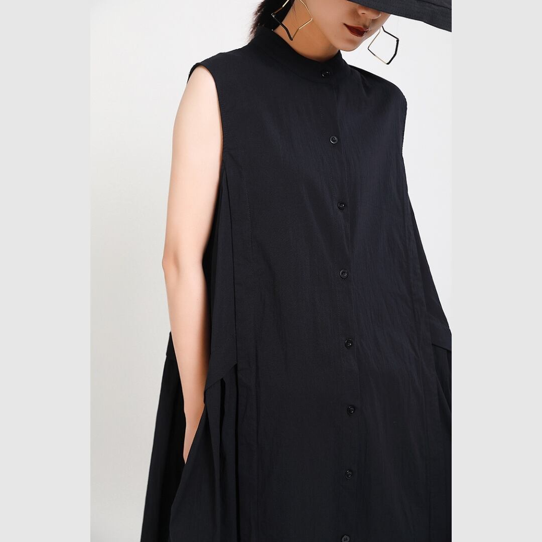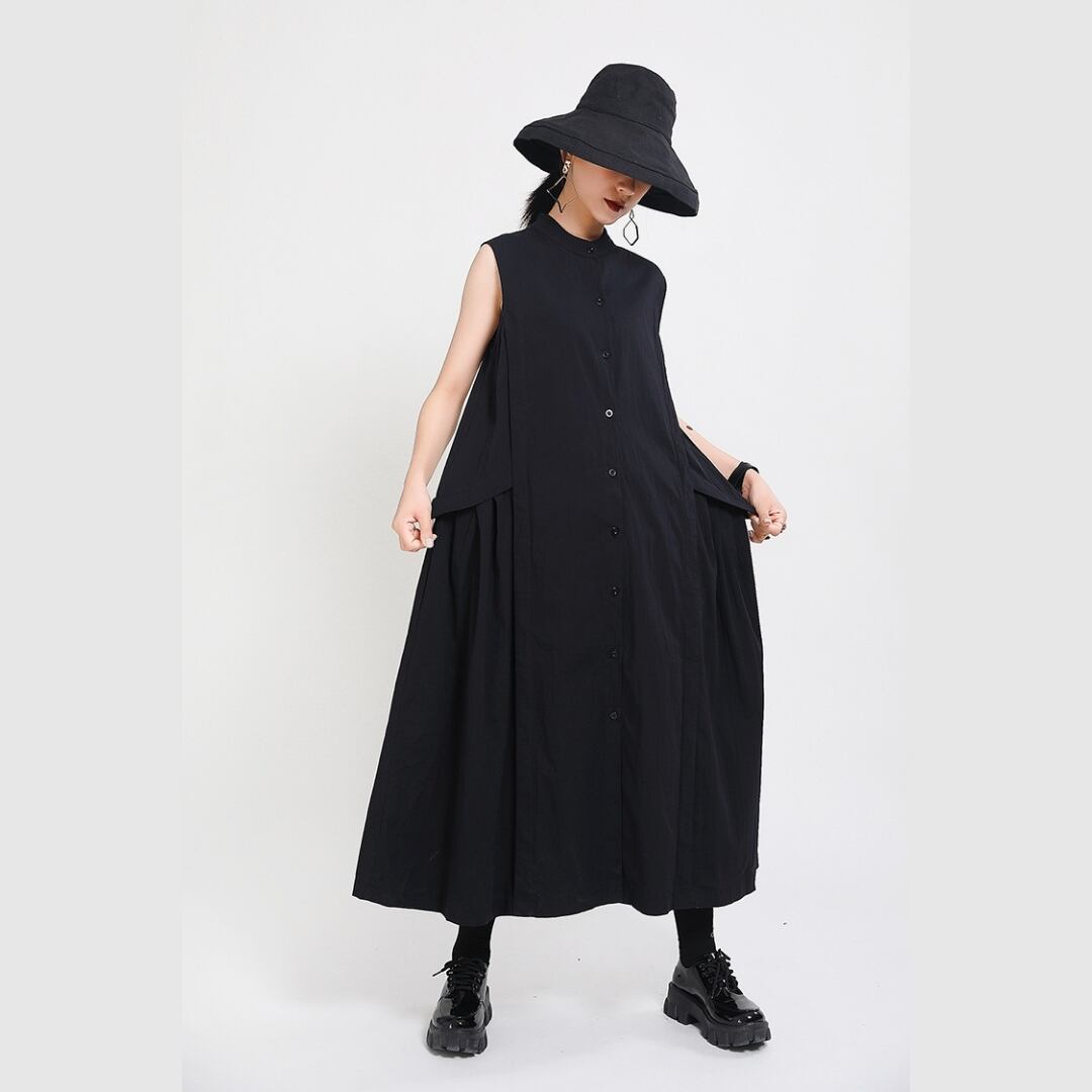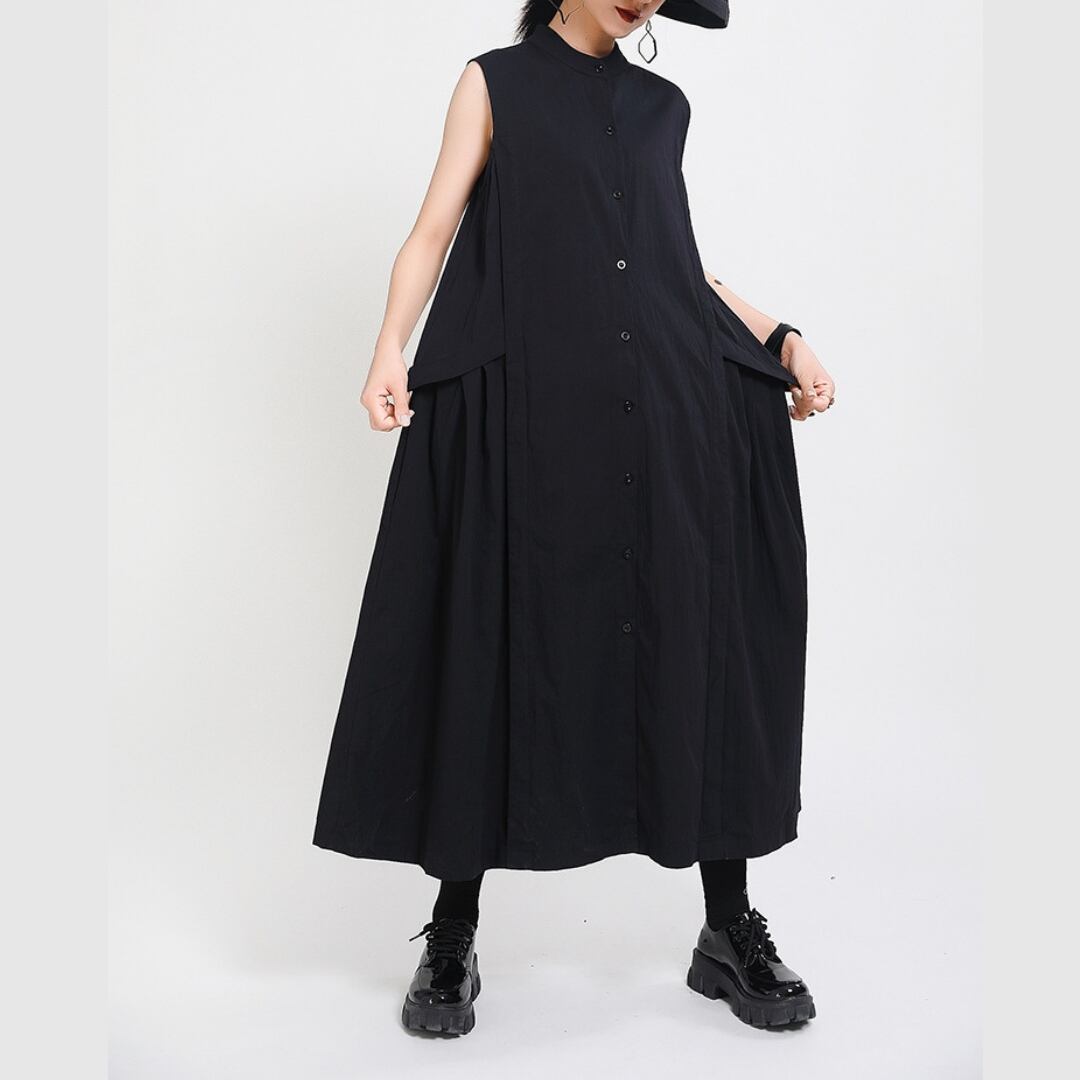 スタンドカラーが首元をきゅっと引き締め、モード感のある佇まいに。