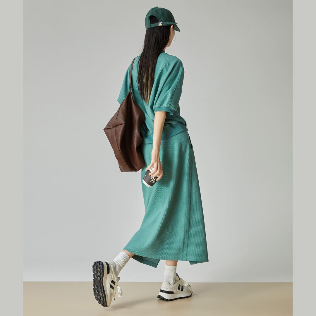 エフォートレスに纏える、上品カジュアルなセットアップが登場。 程よいハリ感のあるグリーン生地が、都会的で清潔感のある雰囲気を演出します。 SIZE: 【S】 肩幅30cm 胸囲94cm 胴囲64cm 着丈/スカート丈 61/82cm 袖丈21cm 【M】 肩幅31cm 胸囲98cm 胴囲68cm 着丈/スカート丈 62/83cm 袖丈22cm 【L】 肩幅32cm 胸囲102cm 胴囲72cm 着丈/スカート丈 63/84cm 袖丈23cm 【XL】 肩幅33cm 胸囲106cm 胴囲76cm 着丈/スカート丈 64/85cm 袖丈24cm ※採寸方法により1~2cmの誤差がある場合がございます 素材:ポリエステル モデル情報:身長166cm 着用サイズ M 参考:身長/体重/スリーサイズ サイズ ①158cm/45kg 78/60/83 S ②163cm/48kg 83/65/84 M ③166cm/53kg 86/67/89 M ④170cm/60kg 89/72/94 L ※IROPHORIAではお客様のご注文を受け1点1点商品を製作・取り寄せしております。そのため、ご入金から発送までに1週間〜3週間前後お時間をいただきます。 余裕をもってのお買い求めをお願い致します。 No: I25051 ✦注意事項✦ ・タイミングによっては 商品在庫切れにより 注文キャンセルとさせていただく恐れもございますので、 予めご了承くださいませ。 ・海外製品のため日本とは製造基準が異なります。 ご理解のうえご購入ください。 ・商品の色味は、お持ちのデバイス画面により 実物と若干異なる場合がございます。 ・イメージ違いやサイズ等、お客様都合による交換、返品、 キャンセルは対応出来かねます。 ———————————— ご購入前にこちらをお読みください → https://shop.irophoria.tokyo/about ————————————