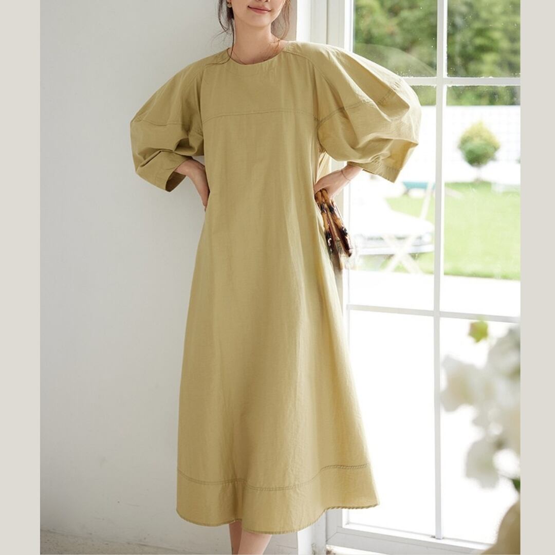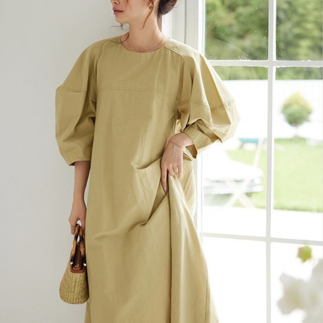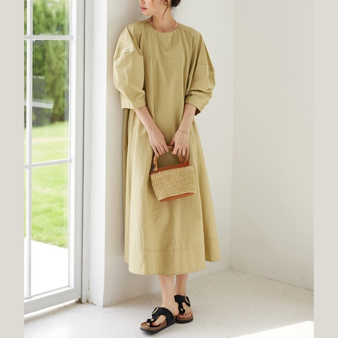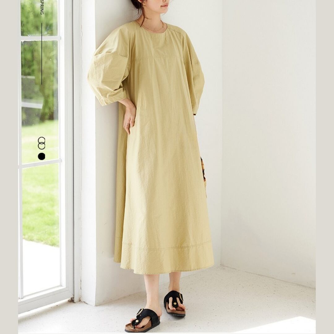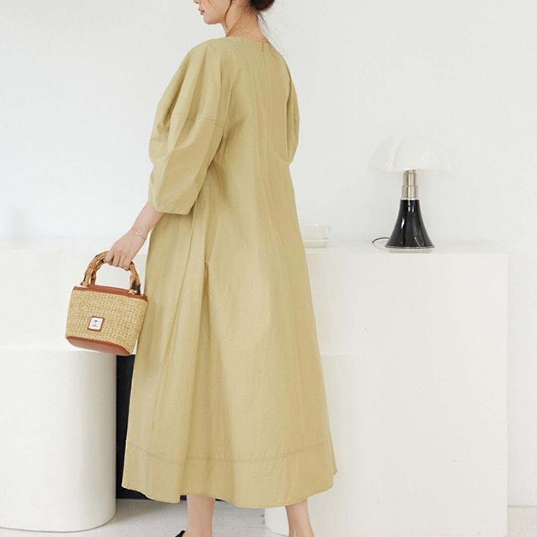 シンプルなデザインながら、パフスリーブがさりげないアクセントになったミディ丈ワンピース。着回し力の高さが魅力で、様々なシーンで活躍します。リラックスした休日スタイルにも、上品な装いにも合わせやすく、ワードローブに一枚加えたいアイテムです。 SIZE: 【L】 胸囲 106cm 着丈 127cm 【XL】 胸囲 110cm 着丈 127cm 【2XL】 胸囲 114cm 着丈 128cm 【3XL】 胸囲 118cm 着丈 128cm ※採寸方法により1~2cmの誤差がある場合がございます 素材:ポリエステル モデル情報:身長170cm ※IROPHORIAではお客様のご注文を受け1点1点商品を製作・取り寄せしております。そのため、ご入金から発送までに1週間〜3週間前後お時間をいただきます。 余裕をもってのお買い求めをお願い致します。 ✦注意事項✦ ・タイミングによっては 商品在庫切れにより 注文キャンセルとさせていただく恐れもございますので、 予めご了承くださいませ。 ・海外製品のため日本とは製造基準が異なります。 ご理解のうえご購入ください。 ・商品の色味は、お持ちのデバイス画面により 実物と若干異なる場合がございます。 ・イメージ違いやサイズ等、お客様都合による交換、返品、 キャンセルは対応出来かねます。 —————————————————— ⬇︎ ご購入前にこちらをお読みください https://shop.irophoria.tokyo/about ——————————————————