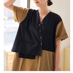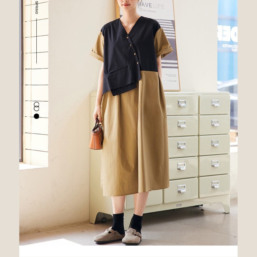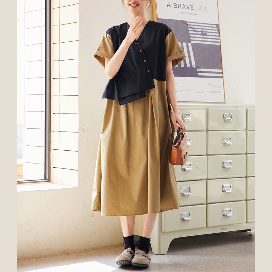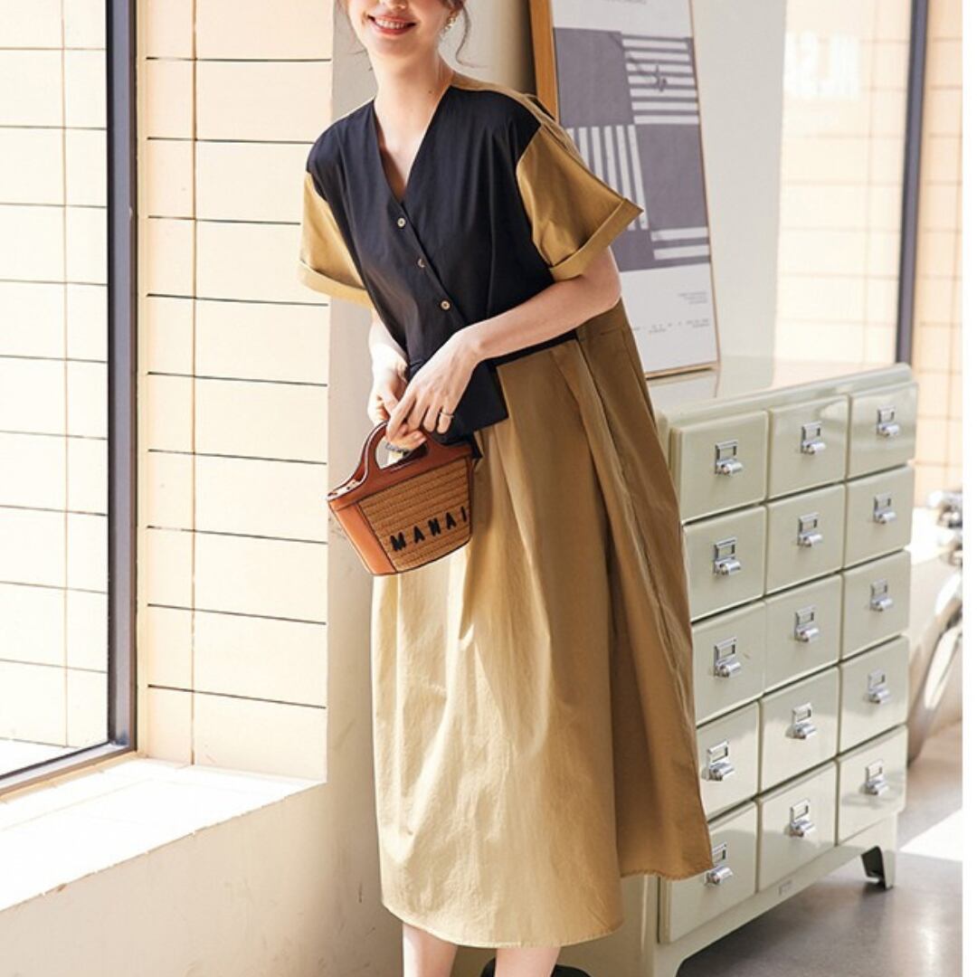 一枚で、着こなし上級者。 まるでベストをレイヤードしているかのようなバイカラーデザイン。 ブラック×モカのシックな配色が、大人の洒落感を引き出してくれるワンピースです。 袖から背中にかけてつながるフラットなシルエットが、 自然体で着られるのにきちんと感もキープ。 楽ちんなのに、どこか印象に残るデザインが魅力です。 SIZE: 【L】 肩幅 49cm 胸囲 118cm 着丈 119cm 袖丈 24cm 【XL】 肩幅 50cm 胸囲 122cm 着丈 119cm 袖丈 25cm 【2XL】 肩幅 51cm 胸囲 126cm 着丈 120cm 袖丈 26cm 【3XL】 肩幅 52cm 胸囲 130cm 着丈 120cm 袖丈 27cm ※採寸方法により1~2cmの誤差がある場合がございます 素材:ポリエステル モデル情報:身長170cm ※IROPHORIAではお客様のご注文を受け1点1点商品を製作・取り寄せしております。そのため、ご入金から発送までに1週間〜3週間前後お時間をいただきます。 余裕をもってのお買い求めをお願い致します。 ✦注意事項✦ ・タイミングによっては 商品在庫切れにより 注文キャンセルとさせていただく恐れもございますので、 予めご了承くださいませ。 ・海外製品のため日本とは製造基準が異なります。 ご理解のうえご購入ください。 ・商品の色味は、お持ちのデバイス画面により 実物と若干異なる場合がございます。 ・イメージ違いやサイズ等、お客様都合による交換、返品、 キャンセルは対応出来かねます。 —————————————————— ⬇︎ ご購入前にこちらをお読みください https://shop.irophoria.tokyo/about ——————————————————