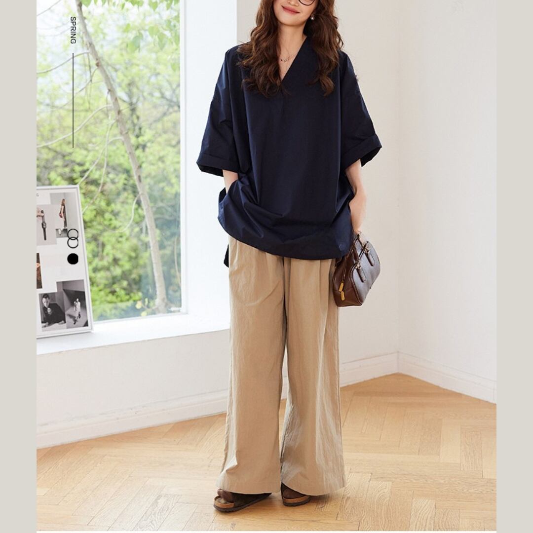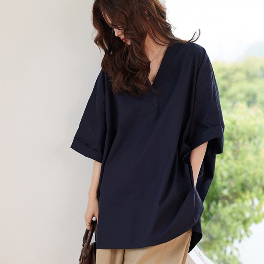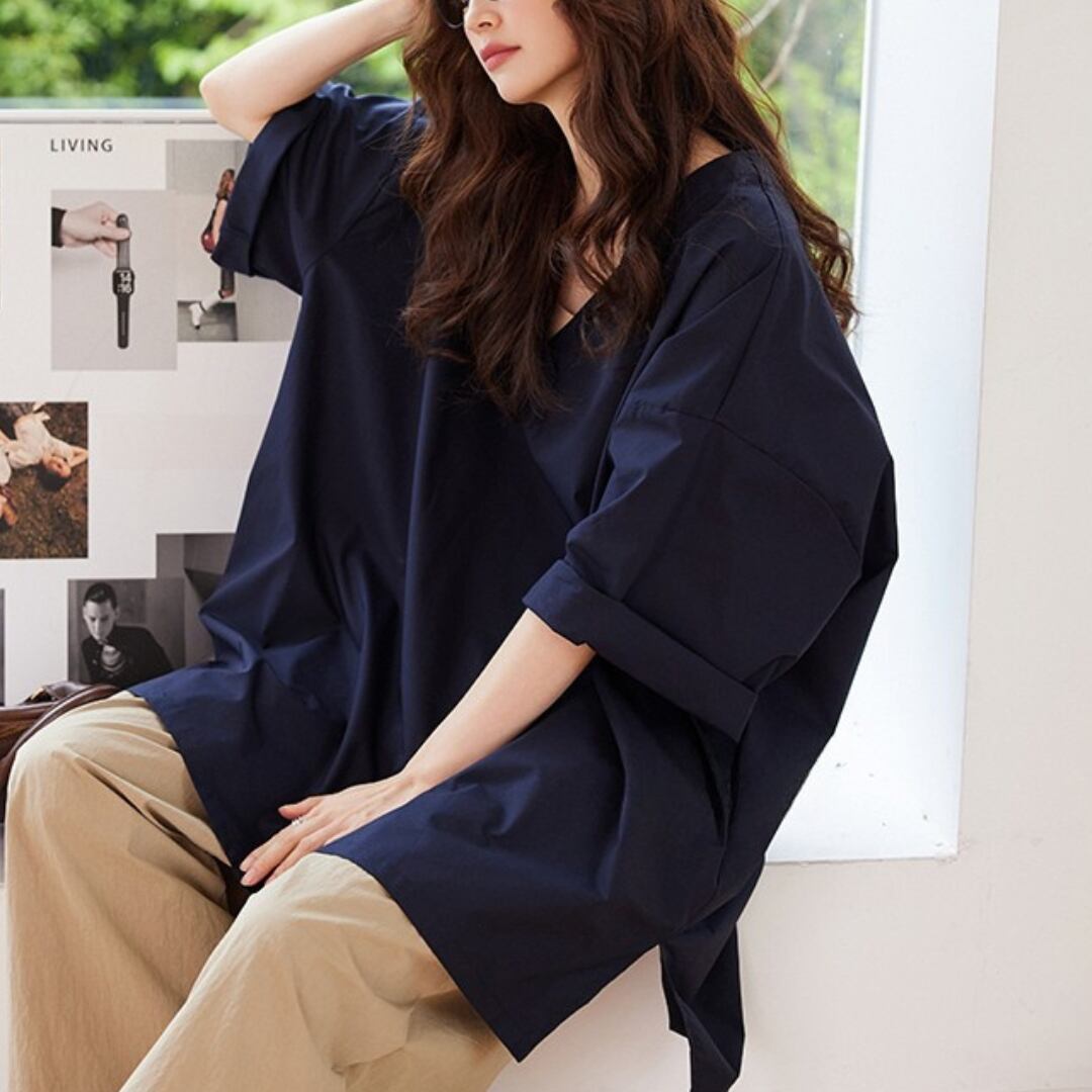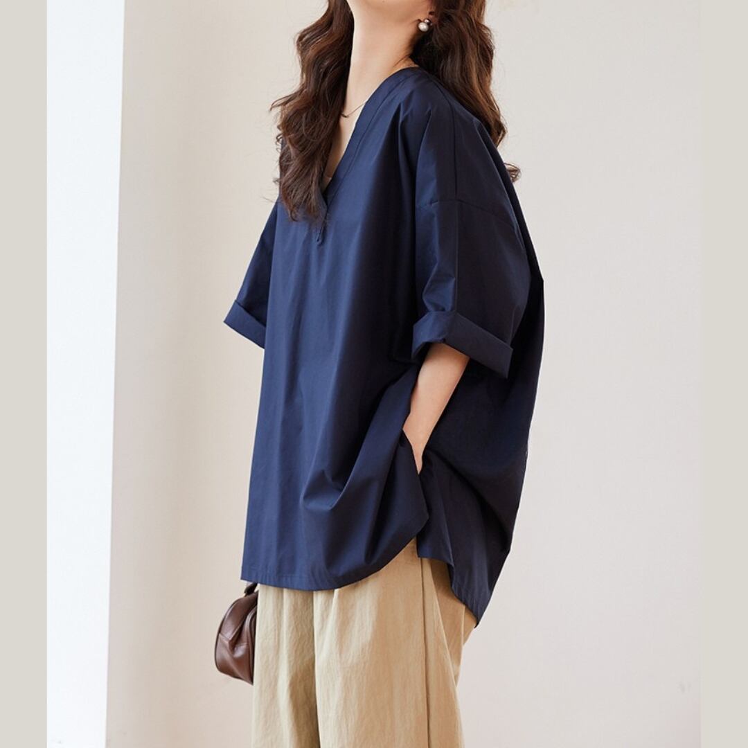 リラックス感のあるオーバーシルエットと、さりげないVネック。