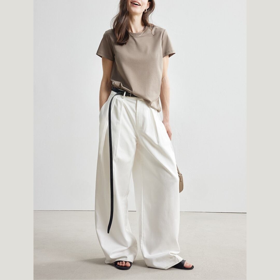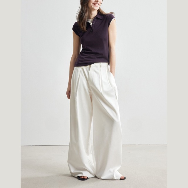 清潔感と存在感を、足元から。 美しい落ち感と、すっきりしたウエストまわり。 フロントのタックが立体感を生み出し、ワイドでももたつかず、きれいなラインをキープ。 ほんのりマットな質感と、春夏に映えるカラーが魅力の一着。 「きちんと見え」と「軽やかさ」が両立した、大人のための万能パンツです。 SIZE: 【S】 ウエスト 72cm ヒップ 114cm パンツ丈 106cm 前股上 30cm 後股上 40cm 太もも周り 73cm 【M】 ウエスト 76cm ヒップ 118cm パンツ丈 107cm 前股上 31cm 後股上 41cm 太もも周り 75.5cm 【L】 ウエスト 80cm ヒップ 122cm パンツ丈 108cm 前股上 32cm 後股上 42cm 太もも周り 78cm 【XL】 ウエスト 84cm ヒップ 126cm パンツ丈 109cm 前股上 33cm 後股上 43cm 太もも周り 80.5cm ※採寸方法により1~2cmの誤差がある場合がございます COLOR:WHITE / SKY BLUE 素材:コットン98%、スパンデックス2% モデル情報:身長178cm ※着用サイズ:丈+8cm特別仕様を着用しております。 ※IROPHORIAではお客様のご注文を受け1点1点商品を製作・取り寄せしております。そのため、ご入金から発送までに1週間〜3週間前後お時間をいただきます。 余裕をもってのお買い求めをお願い致します。 ✦注意事項✦ ・タイミングによっては 商品在庫切れにより 注文キャンセルとさせていただく恐れもございますので、 予めご了承くださいませ。 ・海外製品のため日本とは製造基準が異なります。 ご理解のうえご購入ください。 ・商品の色味は、お持ちのデバイス画面により 実物と若干異なる場合がございます。 ・イメージ違いやサイズ等、お客様都合による交換、返品、 キャンセルは対応出来かねます。 —————————————————— ⬇︎ ご購入前にこちらをお読みください https://shop.irophoria.tokyo/about ——————————————————