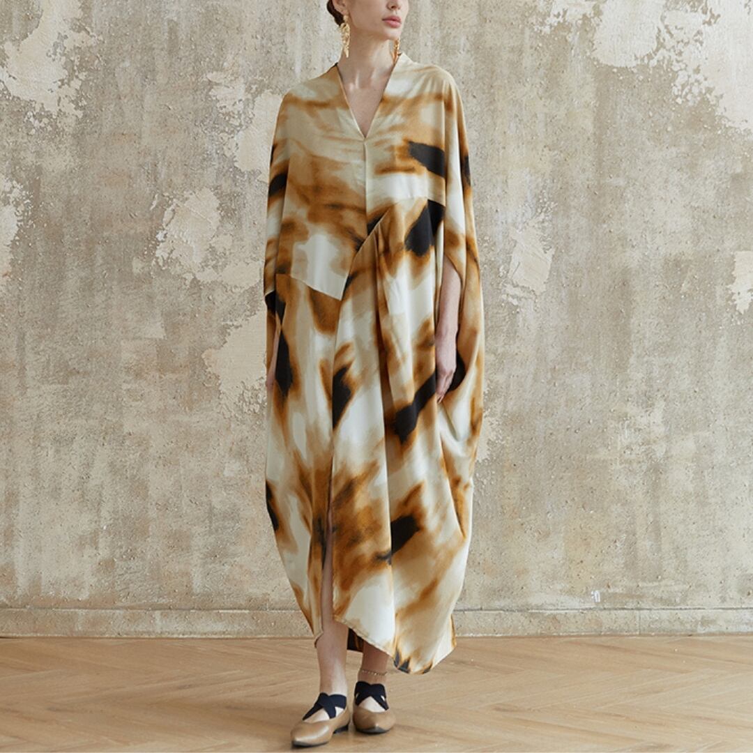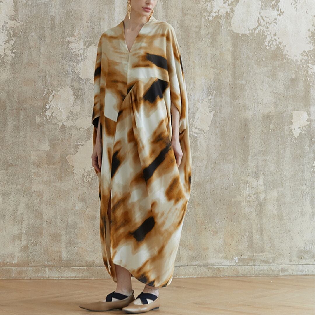 Silk A-Line Silhouette Draped Maxi Dress I25078