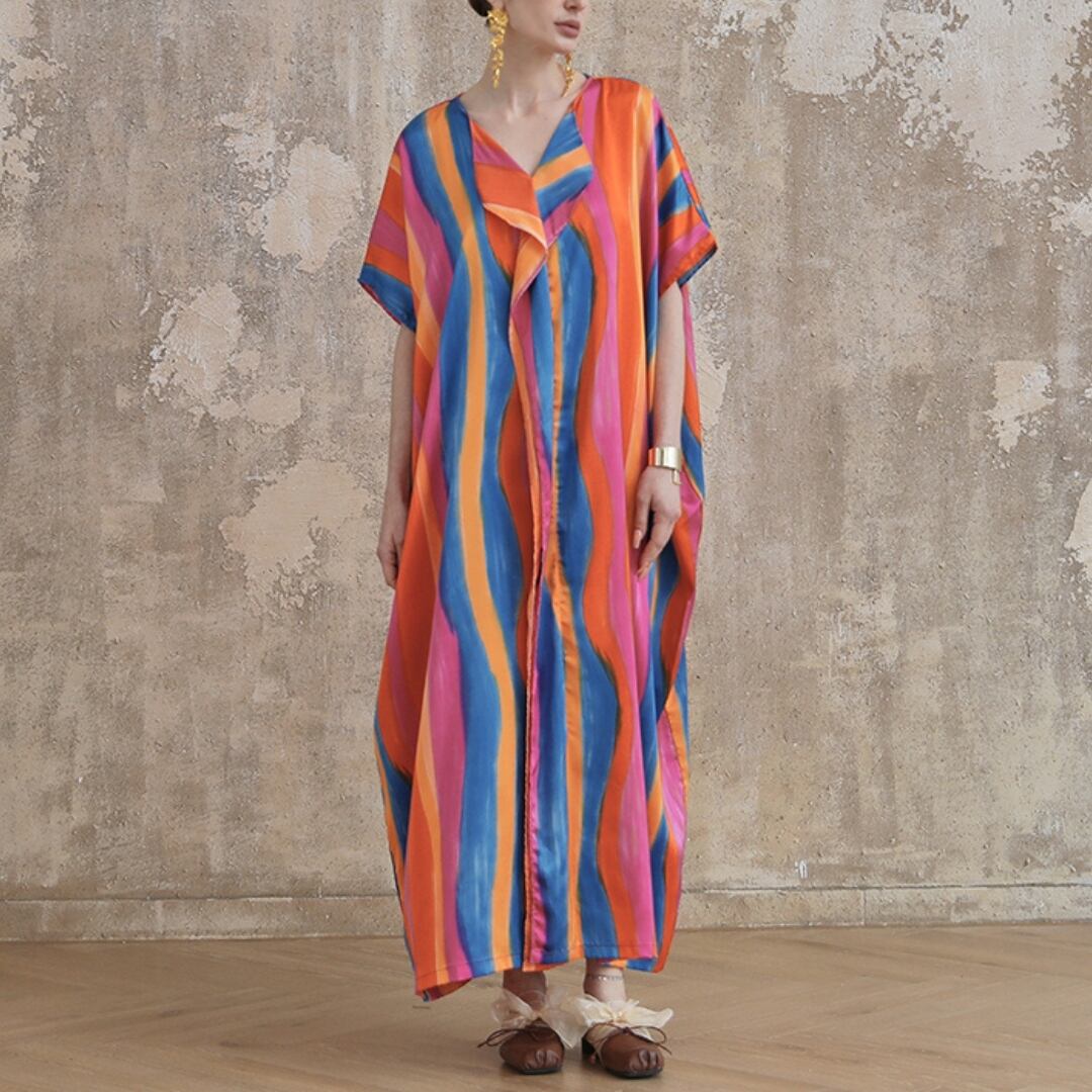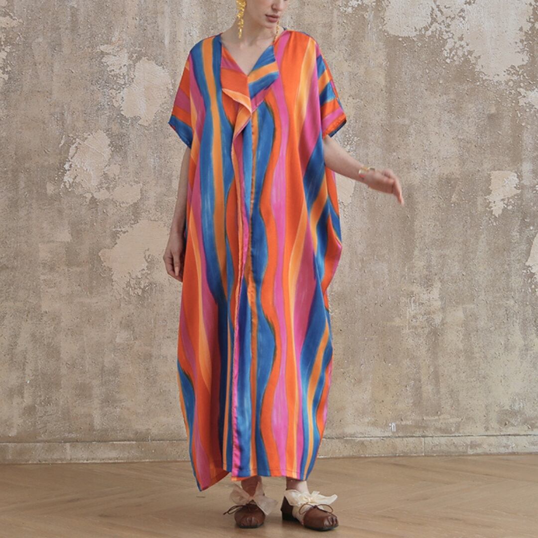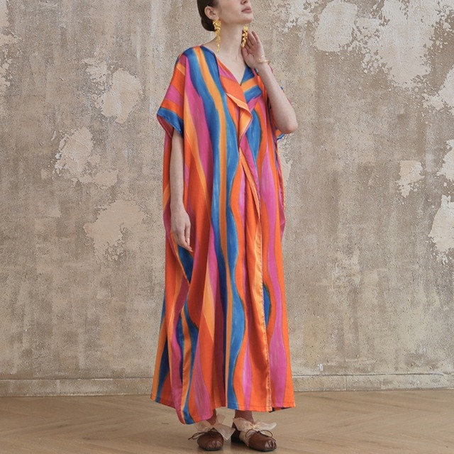 まるでアートをまとって歩くように。 瑞々しい果実と葉のモチーフが全体に広がる、ボタニカルプリントのマキシドレス。身体のラインをふわりと包むようなビッグシルエットで、非日常の美しさと開放感を演出してくれます。 軽やかな生地が歩くたびに揺れ、視線を惹きつける1枚。 SIZE: 【S】 胸囲:170cm ウエスト:170cm 着丈:115cm 【M】 胸囲:170cm ウエスト:170cm 着丈:125cm 【L】 胸囲:170cm ウエスト:170cm 着丈:135cm ※採寸方法により1~2cmの誤差がある場合がございます 素材:レーヨン モデル情報:身長172cm 着用サイズ L ※IROPHORIAではお客様のご注文を受け1点1点商品を製作・取り寄せしております。そのため、ご入金から発送までに1週間〜3週間前後お時間をいただきます。 余裕をもってのお買い求めをお願い致します。 ✦注意事項✦ ・タイミングによっては 商品在庫切れにより 注文キャンセルとさせていただく恐れもございますので、 予めご了承くださいませ。 ・海外製品のため日本とは製造基準が異なります。 ご理解のうえご購入ください。 ・商品の色味は、お持ちのデバイス画面により 実物と若干異なる場合がございます。 ・イメージ違いやサイズ等、お客様都合による交換、返品、 キャンセルは対応出来かねます。 —————————————————— ⬇︎ ご購入前にこちらをお読みください https://shop.irophoria.tokyo/about ——————————————————