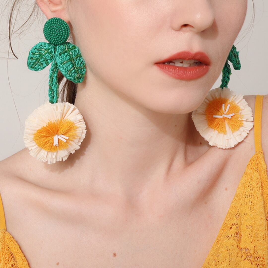 白い花が耳元でゆれる、大ぶりのフラワーピアス。
