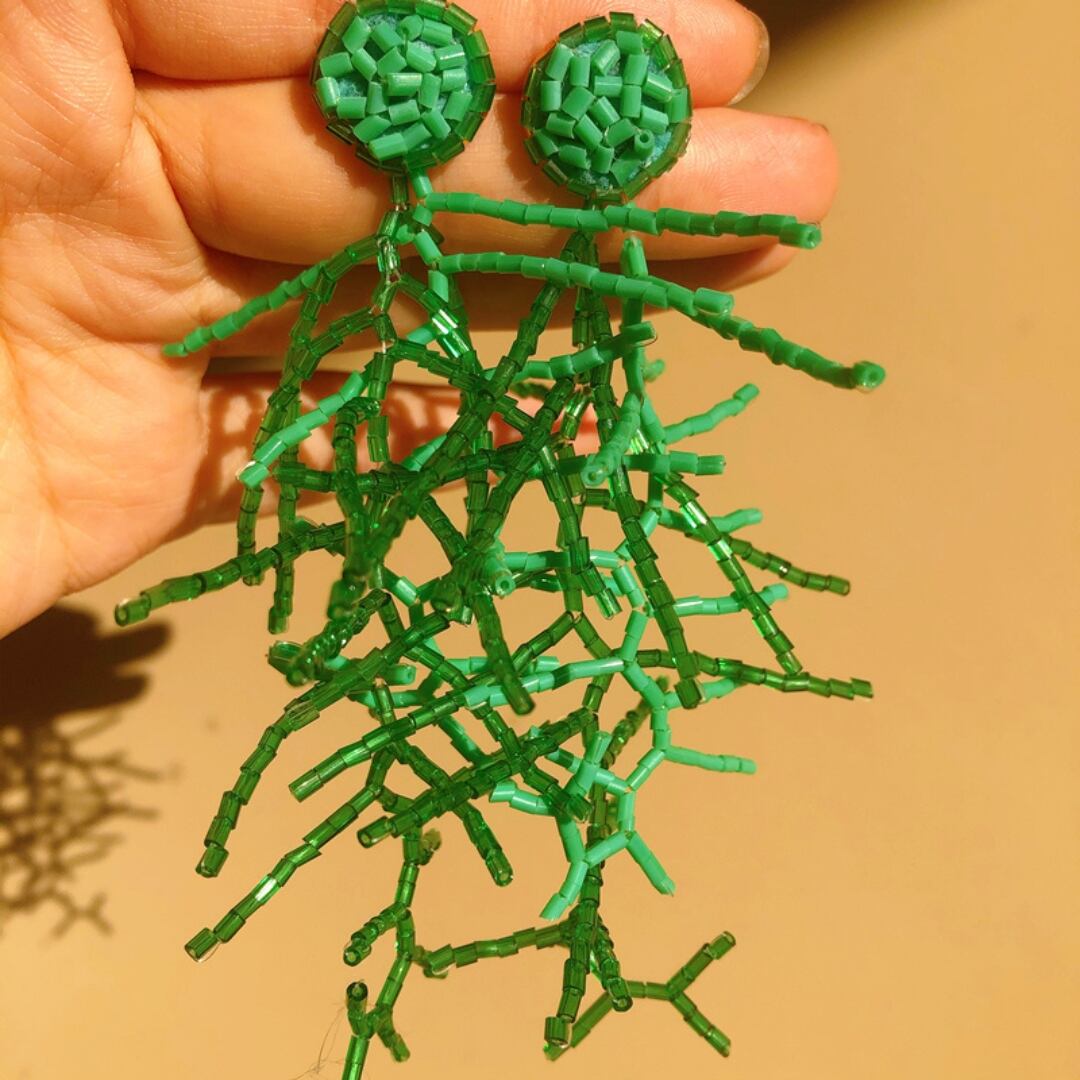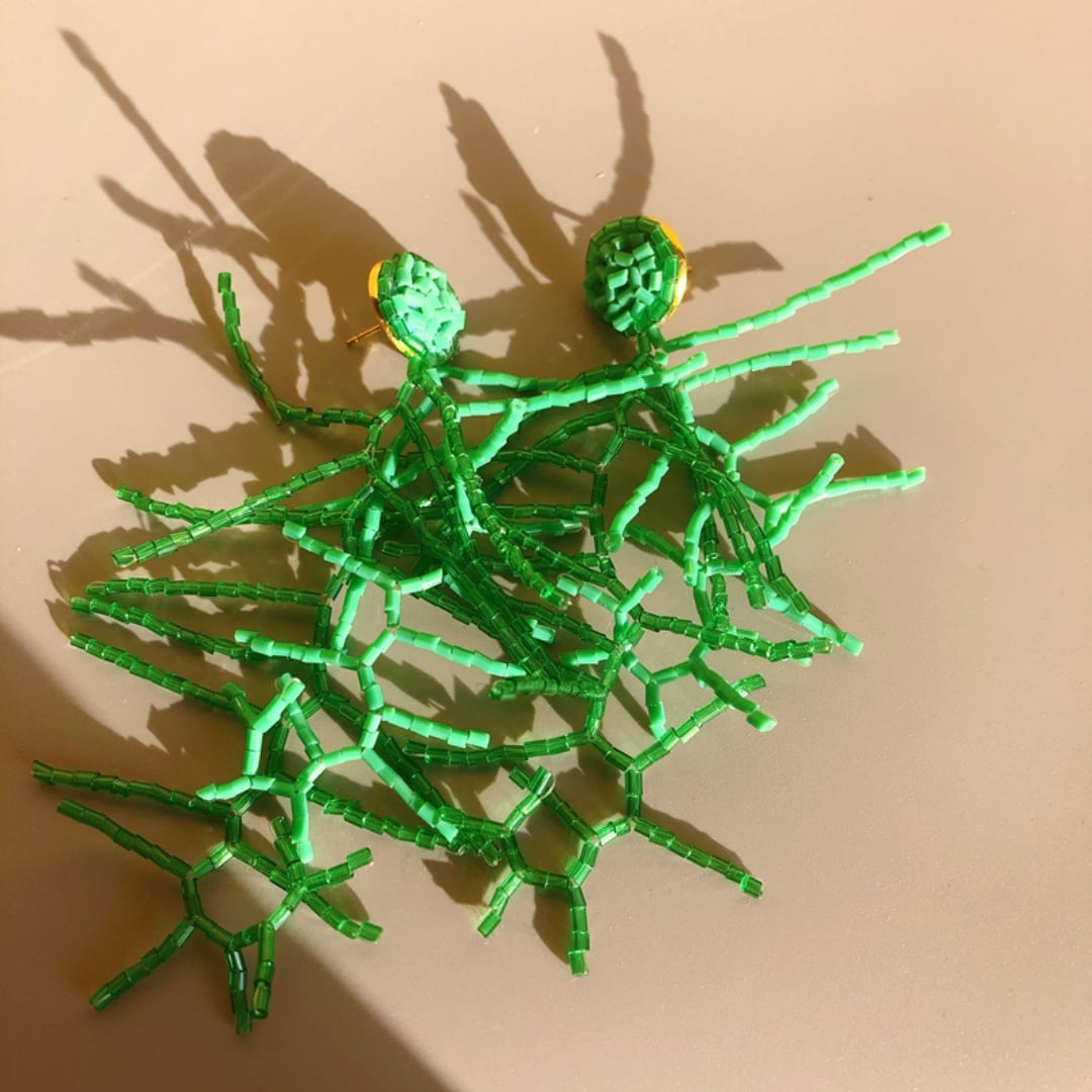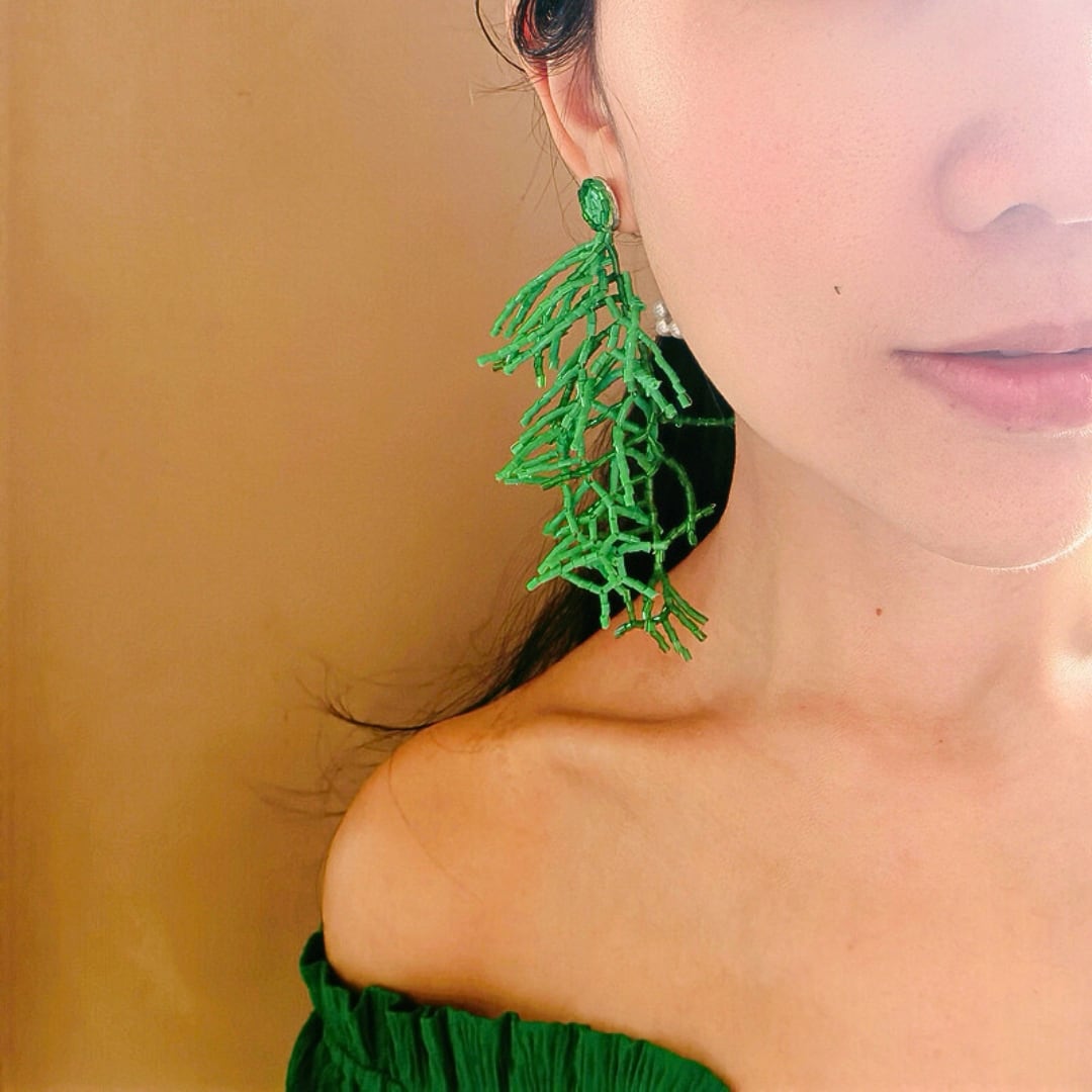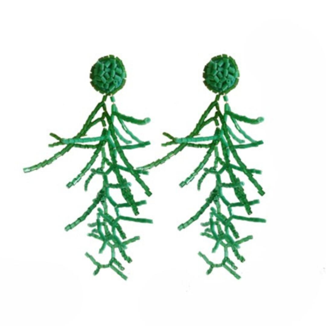 耳元で揺れるユニークなグリーンデザインが、顔まわりを華やかに演出してくれるピアス。