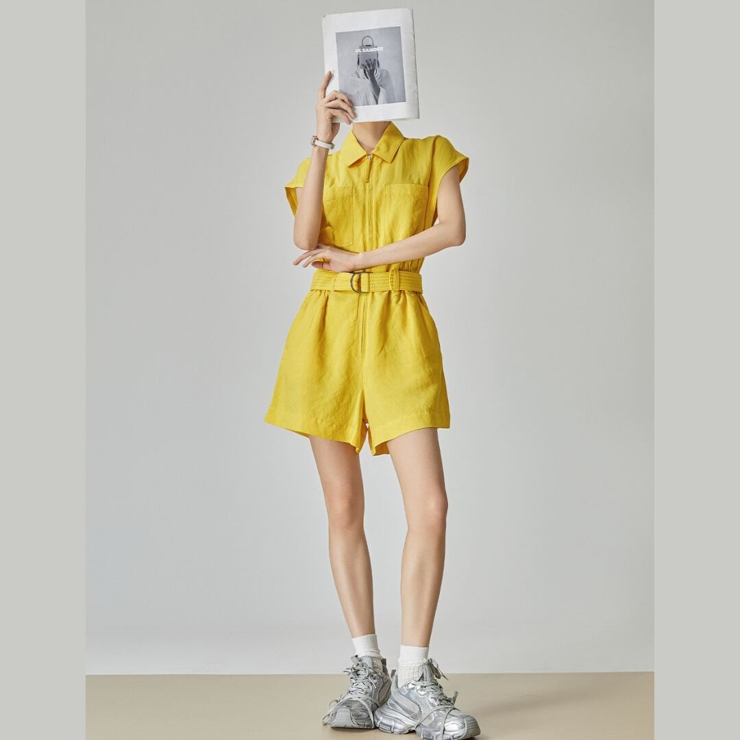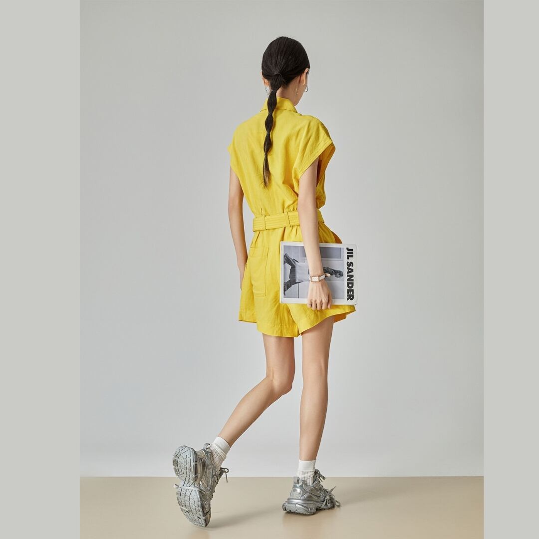 鮮やかなイエローが、 一瞬で心を明るくするショート丈のジャンプスーツ。 軽やかな袖とウエストベルトが、シルエットに立体感を添え、動きやすさと品のある佇まいを両立します。 真夏の街角にも、リゾートの風景にも、太陽のきらめきと一緒に出かけられる一着です。 SIZE: 【S】肩幅:30 胸囲:94 ウエスト:64 着丈:74 【M】肩幅:31 胸囲:98 ウエスト:68 着丈:75 【L】肩幅:32 胸囲:102 ウエスト:72 着丈:76 【XL】肩幅:33 胸囲:106 ウエスト:76 着丈:77 ※採寸方法により1~3cmの誤差がある場合がございます 素材:ポリエステル モデル情報:身長166cm 着用サイズ M ※IROPHORIAではお客様のご注文を受け1点1点商品を取り寄せしております。そのため、ご入金から発送までに1週間〜3週間前後お時間をいただきます。 余裕をもってのお買い求めをお願い致します。 ✦注意事項✦ ・タイミングによっては 商品在庫切れにより注文キャンセルとさせていただく恐れもございますので、予めご了承くださいませ。 ・海外製品のため日本とは製造基準が異なります。ご理解のうえご購入ください。 ・商品の色味は、お持ちのデバイス画面により実物と若干異なる場合がございます。 ・イメージ違いやサイズ等、お客様都合による交換、返品、キャンセルは対応出来かねます。 —————————————————— ⬇︎ ご購入前にこちらをお読みください https://shop.irophoria.tokyo/about ——————————————————