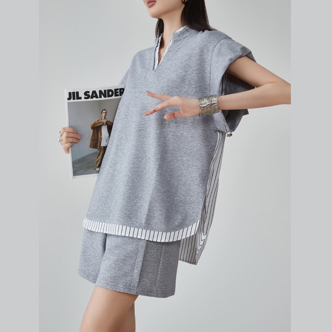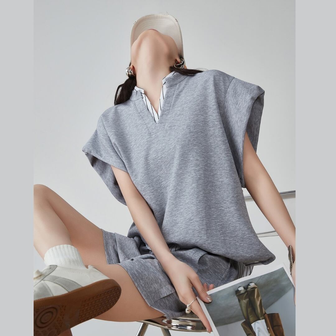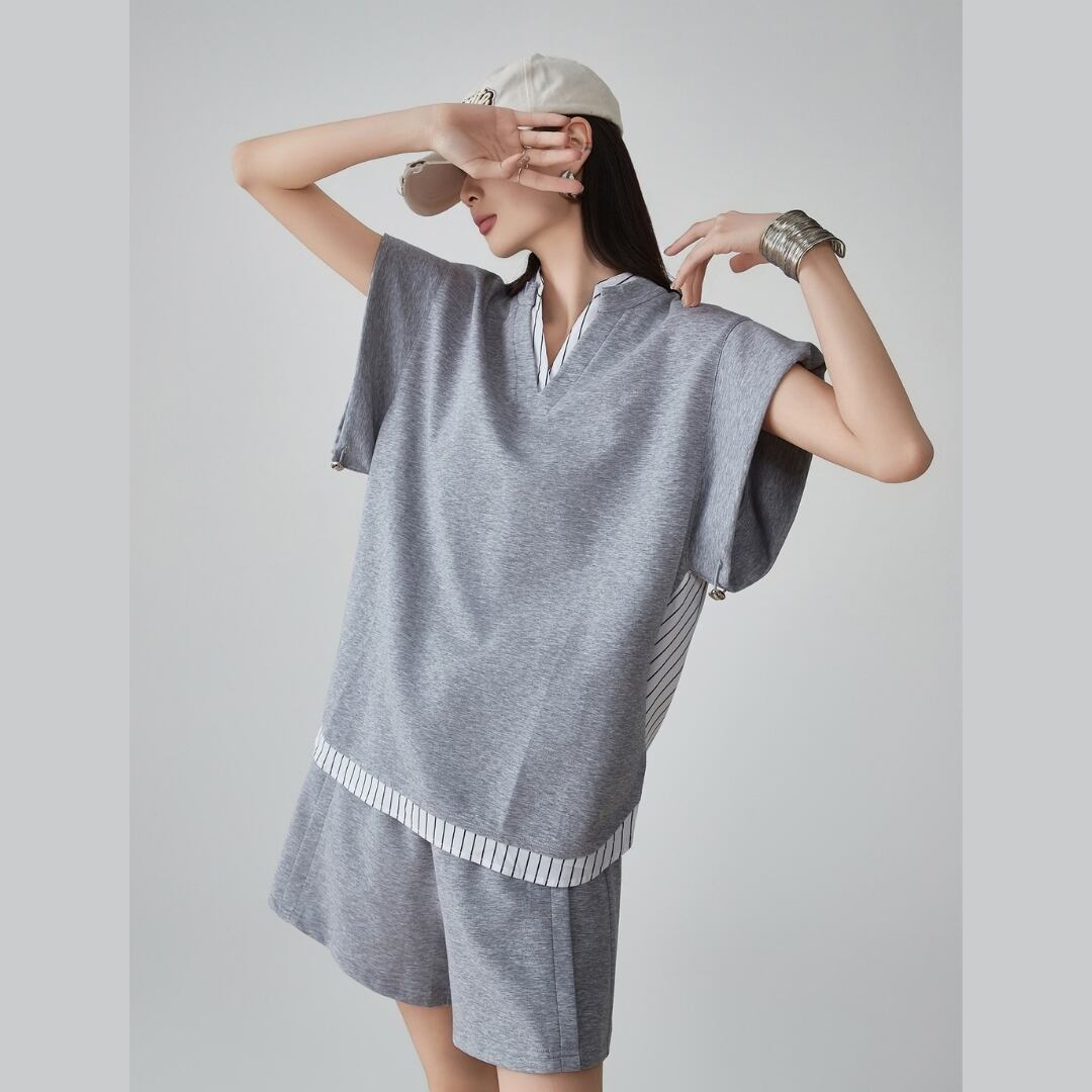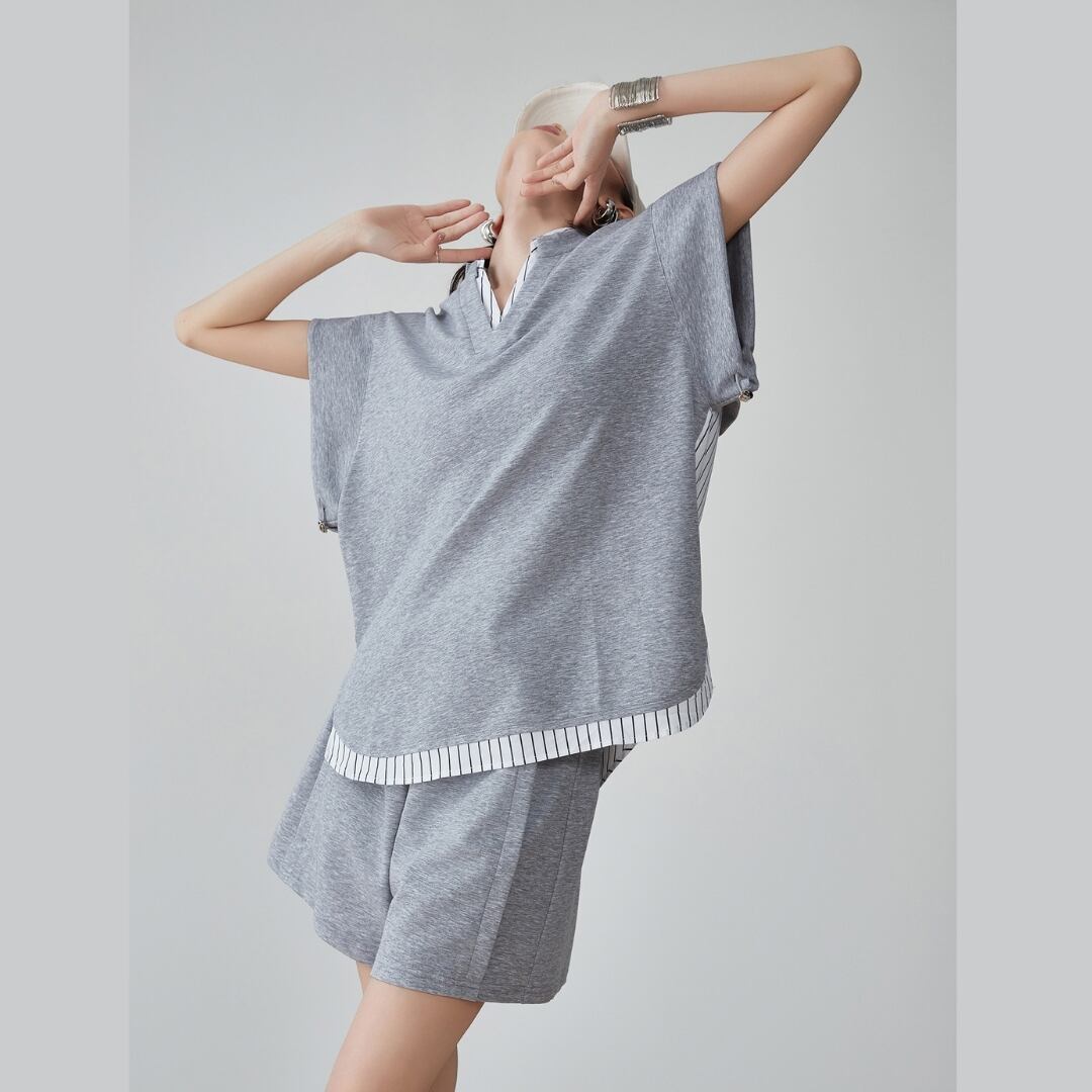 グレーの静けさに、遊び心をひとさじ シンプルなグレーにストライプを効かせた、 トップスとショーツのセットアップ。 肩を落としたゆるやかなシルエットが、 リラックス感とこなれた印象を同時に叶えます。 サイドのストライプが動きにリズムを与え、 都会にもリゾートにも映えるデザイン。 カジュアルな日常に、洗練を加える一着です。 SIZE: 〈トップス〉 【S】肩幅:50cm 胸囲:119cm 着丈:70cm 【M】肩幅:52cm 胸囲:123cm 着丈:71cm 【L】肩幅:54cm 胸囲:127cm 着丈:72cm 【XL】肩幅:56cm 胸囲:131cm 着丈:73cm 〈ボトムス〉 【S】ウエスト:62cm パンツ丈:37.5cm 【M】ウエスト:65.5cm パンツ丈:38cm 【L】ウエスト:69cm パンツ丈:38.5cm 【XL】ウエスト:72.5cm パンツ丈:39cm ※採寸方法により1~3cmの誤差がある場合がございます 素材:ポリエステル モデル情報:身長166cm 着用サイズ M ※IROPHORIAではお客様のご注文を受け1点1点商品を取り寄せしております。そのため、ご入金から発送までに1週間〜3週間前後お時間をいただきます。 余裕をもってのお買い求めをお願い致します。 ✦注意事項✦ ・タイミングによっては 商品在庫切れにより注文キャンセルとさせていただく恐れもございますので、予めご了承くださいませ。 ・海外製品のため日本とは製造基準が異なります。ご理解のうえご購入ください。 ・商品の色味は、お持ちのデバイス画面により実物と若干異なる場合がございます。 ・イメージ違いやサイズ等、お客様都合による交換、返品、キャンセルは対応出来かねます。 —————————————————— ⬇︎ ご購入前にこちらをお読みください https://shop.irophoria.tokyo/about ——————————————————
