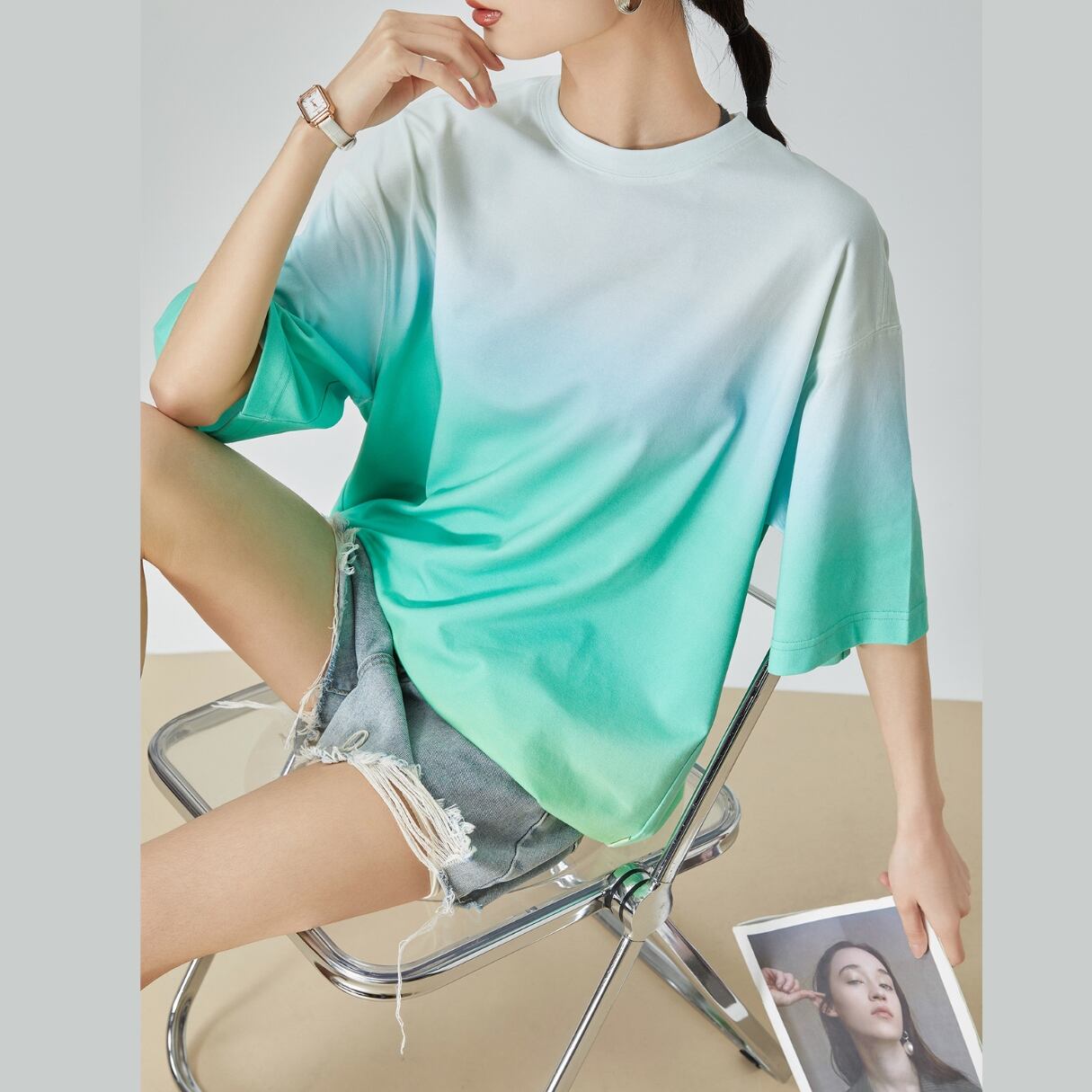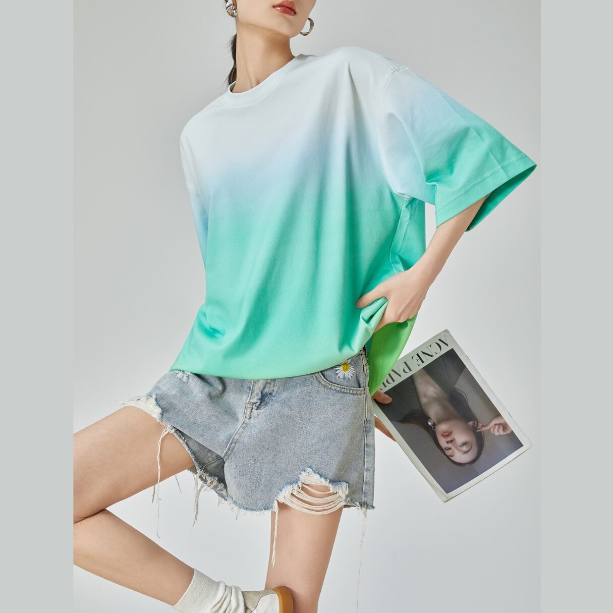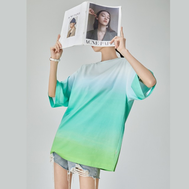 海と空が溶け合う色を纏う やわらかく移ろうグラデーションが美しいオーバーサイズTシャツ。 軽やかな色の流れは、まるで海岸線をなぞる波や、 午後の海風が運ぶ空気のよう。 一枚で存在感がありながら、 デニムにもスカートにも馴染む万能な一着です。 SIZE: 【S】肩幅:30cm 胸囲:94cm 着丈:63cm 袖丈:32cm 【M】肩幅:31cm 胸囲:98cm 着丈:64cm 袖丈:33cm 【L】肩幅:32cm 胸囲:102cm 着丈:65cm 袖丈:34cm 【XL】肩幅:33cm 胸囲:106cm 着丈:66cm 袖丈:35cm ※採寸方法により1~3cmの誤差がある場合がございます 素材:ポリエステル モデル情報:身長166cm 着用サイズ M ※IROPHORIAではお客様のご注文を受け1点1点商品を取り寄せしております。そのため、ご入金から発送までに1週間〜3週間前後お時間をいただきます。 余裕をもってのお買い求めをお願い致します。 ✦注意事項✦ ・タイミングによっては 商品在庫切れにより注文キャンセルとさせていただく恐れもございますので、予めご了承くださいませ。 ・海外製品のため日本とは製造基準が異なります。ご理解のうえご購入ください。 ・商品の色味は、お持ちのデバイス画面により実物と若干異なる場合がございます。 ・イメージ違いやサイズ等、お客様都合による交換、返品、キャンセルは対応出来かねます。 —————————————————— ⬇︎ ご購入前にこちらをお読みください https://shop.irophoria.tokyo/about ——————————————————