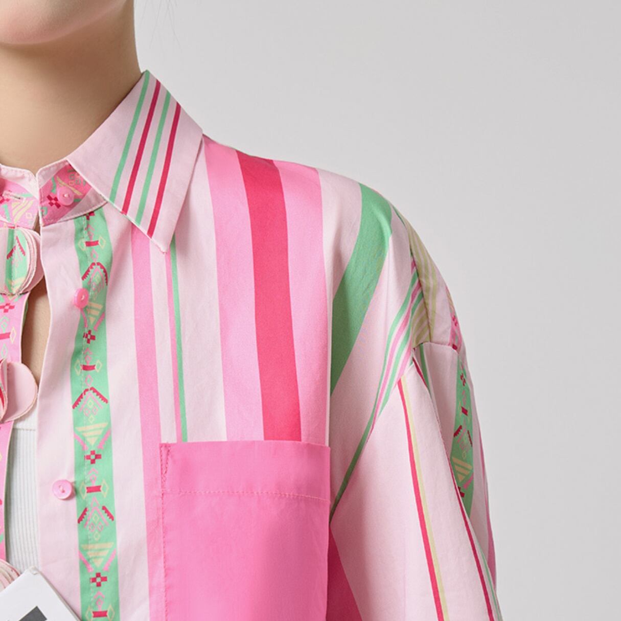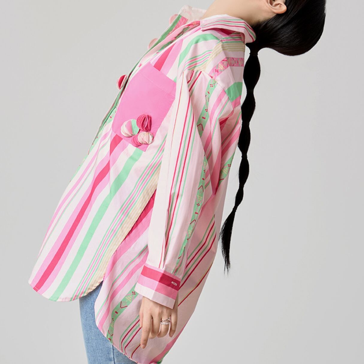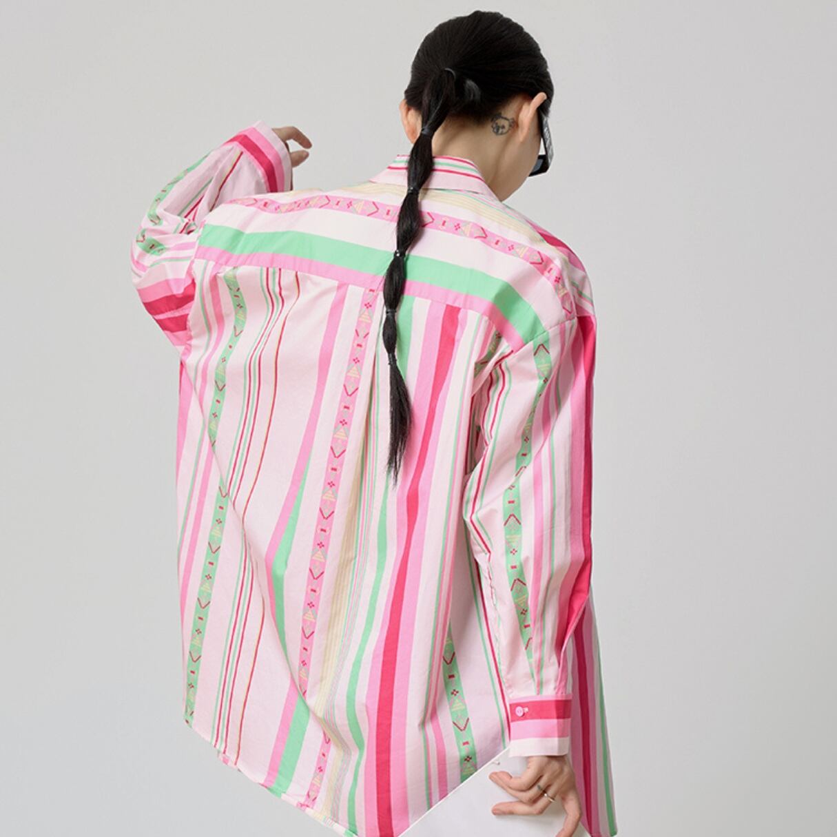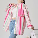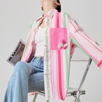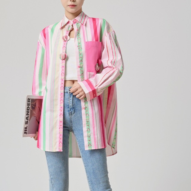 ピンク、グリーン、ホワイトのストライプが軽やかに並ぶ、 華やかで遊び心のあるロングシャツ。 胸ポケットやフロントボタンにあしらったアクセントカラーが、 日常の装いを一瞬で明るくしてくれます。 羽織ってラフに、ボタンを留めて端正に。 着こなしの幅を広げる、大人のカラーストライプです。 SIZE: 【S】肩幅:36cm 胸囲:90cm 着丈:62cm 袖丈:41cm 【M】肩幅:37cm 胸囲:94cm 着丈:63cm 袖丈:42cm 【L】肩幅:38cm 胸囲:98cm 着丈:64cm 袖丈:43cm 【XL】肩幅:39cm 胸囲:102cm 着丈:65cm 袖丈:44cm ※採寸方法により1~3cmの誤差がある場合がございます 素材:ポリエステル モデル情報:身長166cm 着用サイズ M ※IROPHORIAではお客様のご注文を受け1点1点商品を取り寄せしております。そのため、ご入金から発送までに1週間〜3週間前後お時間をいただきます。 余裕をもってのお買い求めをお願い致します。 ✦注意事項✦ ・タイミングによっては 商品在庫切れにより注文キャンセルとさせていただく恐れもございますので、予めご了承くださいませ。 ・海外製品のため日本とは製造基準が異なります。ご理解のうえご購入ください。 ・商品の色味は、お持ちのデバイス画面により実物と若干異なる場合がございます。 ・イメージ違いやサイズ等、お客様都合による交換、返品、キャンセルは対応出来かねます。 —————————————————— ⬇︎ ご購入前にこちらをお読みください https://shop.irophoria.tokyo/about ——————————————————