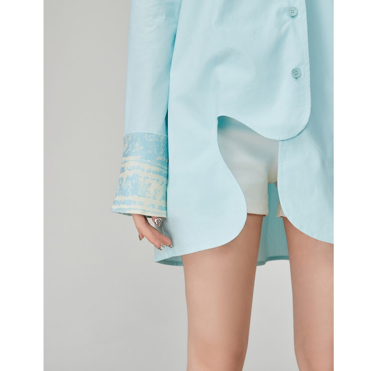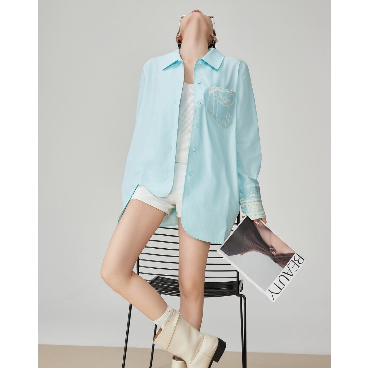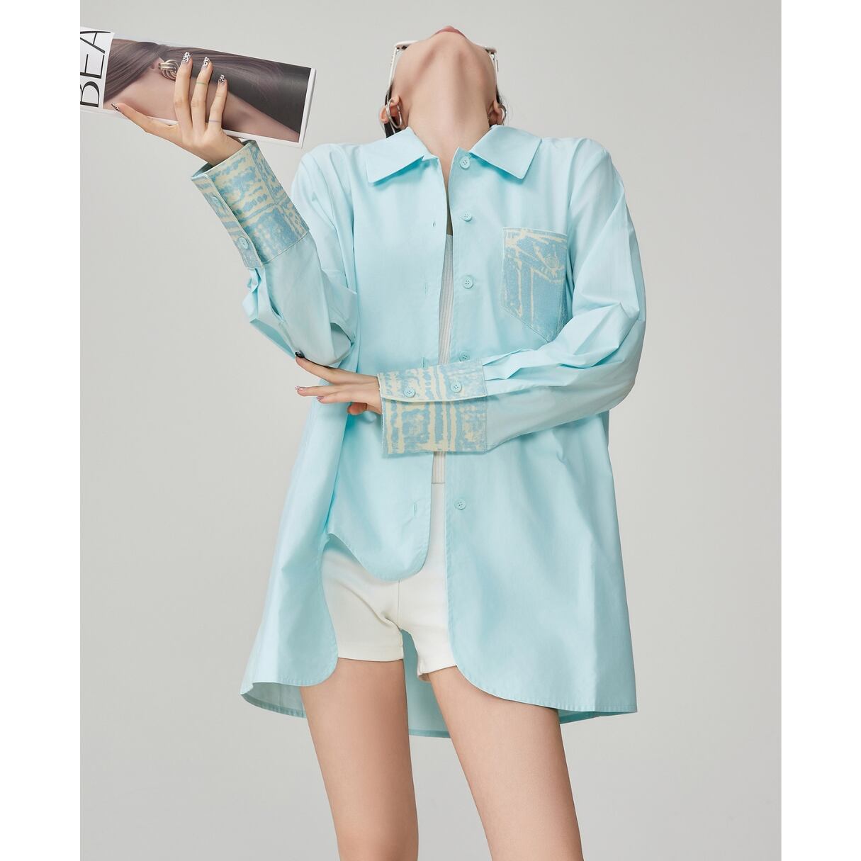 爽やかさを纏う 透き通るようなアクアブルーが、 まるで夏の朝の海風をそのまま閉じ込めたよう。 胸ポケットとカフス部分にあしらわれた 淡い柄のアクセントが、さりげない個性をプラス。 軽やかな生地感で、羽織っても、 一枚でさらっと着ても決まる万能アイテム。 ホワイト系のインナーやボトムスと合わせれば、 一気にクリーンで洗練された印象に。 SIZE: 【S】肩幅:30cm 胸囲:94cm 着丈:63cm 袖丈:44cm 【M】肩幅:31cm 胸囲:98cm 着丈:64cm 袖丈:45cm 【L】肩幅:32cm 胸囲:102cm 着丈:65cm 袖丈:46cm 【XL】肩幅:33cm 胸囲:106cm 着丈:66cm 袖丈:47cm ※採寸方法により1~3cmの誤差がある場合がございます 素材:ポリエステル モデル情報:身長166cm 着用サイズ M ※IROPHORIAではお客様のご注文を受け1点1点商品を取り寄せしております。そのため、ご入金から発送までに1週間〜3週間前後お時間をいただきます。 余裕をもってのお買い求めをお願い致します。 ✦注意事項✦ ・タイミングによっては 商品在庫切れにより注文キャンセルとさせていただく恐れもございますので、予めご了承くださいませ。 ・海外製品のため日本とは製造基準が異なります。ご理解のうえご購入ください。 ・商品の色味は、お持ちのデバイス画面により実物と若干異なる場合がございます。 ・イメージ違いやサイズ等、お客様都合による交換、返品、キャンセルは対応出来かねます。 —————————————————— ⬇︎ ご購入前にこちらをお読みください https://shop.irophoria.tokyo/about ——————————————————