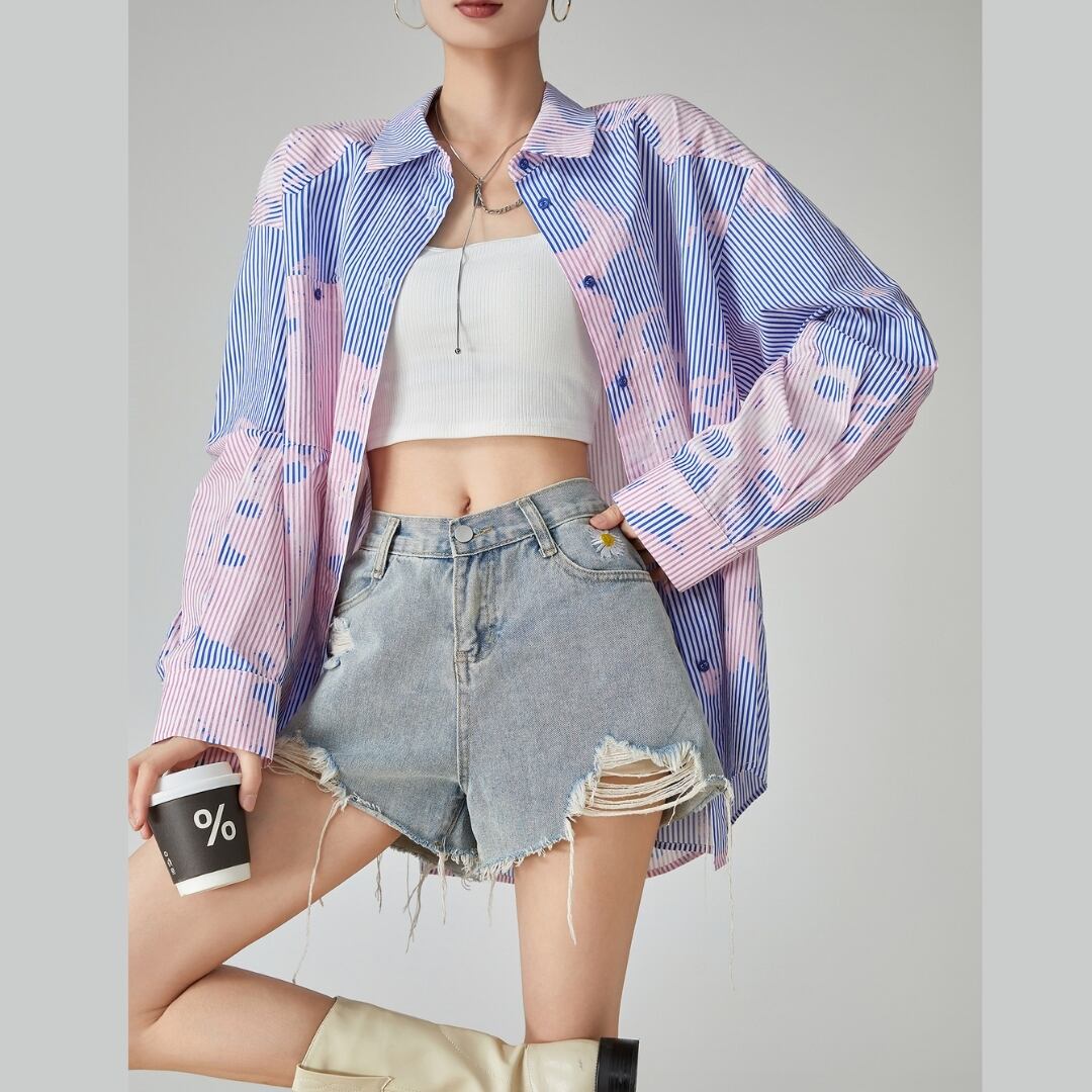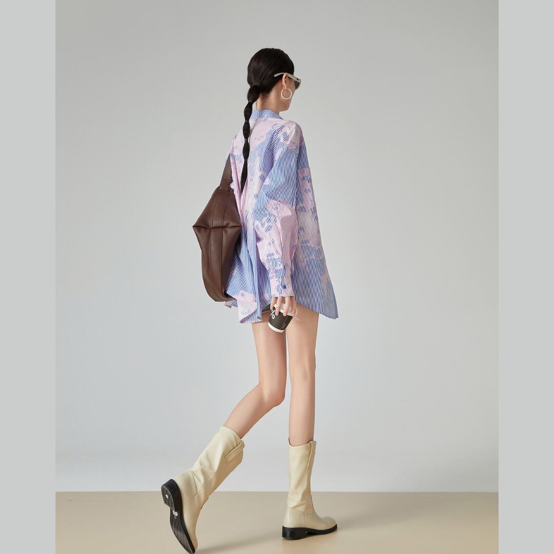 柔らかな色彩で魅せる、アーティなシャツ ブルーとライラックのパターンが溶け合う爽やかシャツ。 ルーズなシルエットで抜け感を演出しつつ、 軽やかな素材感で羽織りやレイヤードも自在。 SIZE: 【S】肩幅:30cm 胸囲:94cm 着丈:62cm 袖丈:41cm 【M】肩幅:31cm 胸囲:98cm 着丈:63cm 袖丈:42cm 【L】肩幅:32cm 胸囲:102cm 着丈:64cm 袖丈:43cm 【XL】肩幅:33cm 胸囲:106cm 着丈:65cm 袖丈:44cm ※採寸方法により1~3cmの誤差がある場合がございます 素材:ポリエステル モデル情報:身長166cm 着用サイズ M ※IROPHORIAではお客様のご注文を受け1点1点商品を取り寄せしております。そのため、ご入金から発送までに1週間〜3週間前後お時間をいただきます。 余裕をもってのお買い求めをお願い致します。 ✦注意事項✦ ・タイミングによっては 商品在庫切れにより注文キャンセルとさせていただく恐れもございますので、予めご了承くださいませ。 ・海外製品のため日本とは製造基準が異なります。ご理解のうえご購入ください。 ・商品の色味は、お持ちのデバイス画面により実物と若干異なる場合がございます。 ・イメージ違いやサイズ等、お客様都合による交換、返品、キャンセルは対応出来かねます。 —————————————————— ⬇︎ ご購入前にこちらをお読みください https://shop.irophoria.tokyo/about ——————————————————