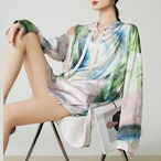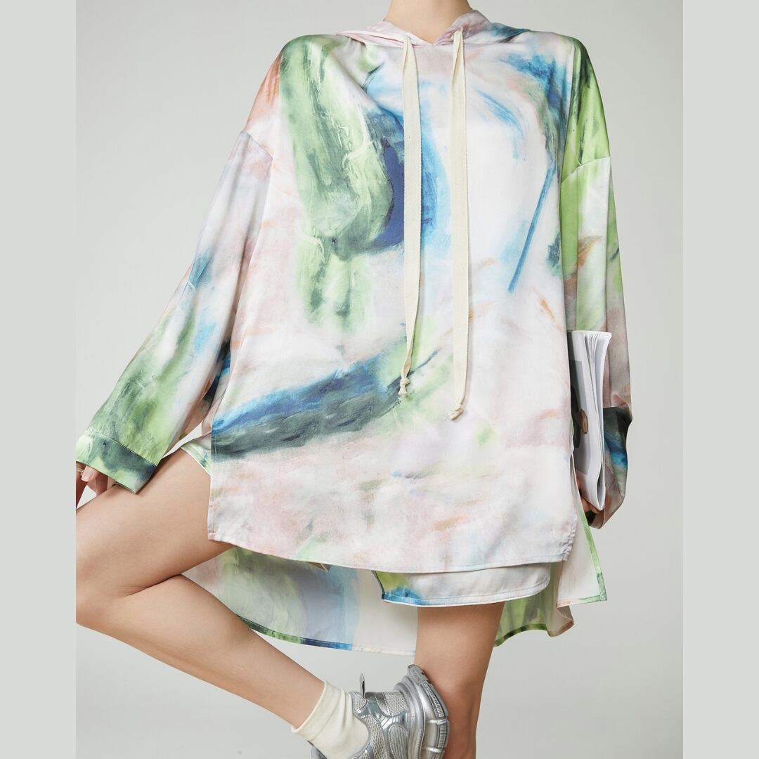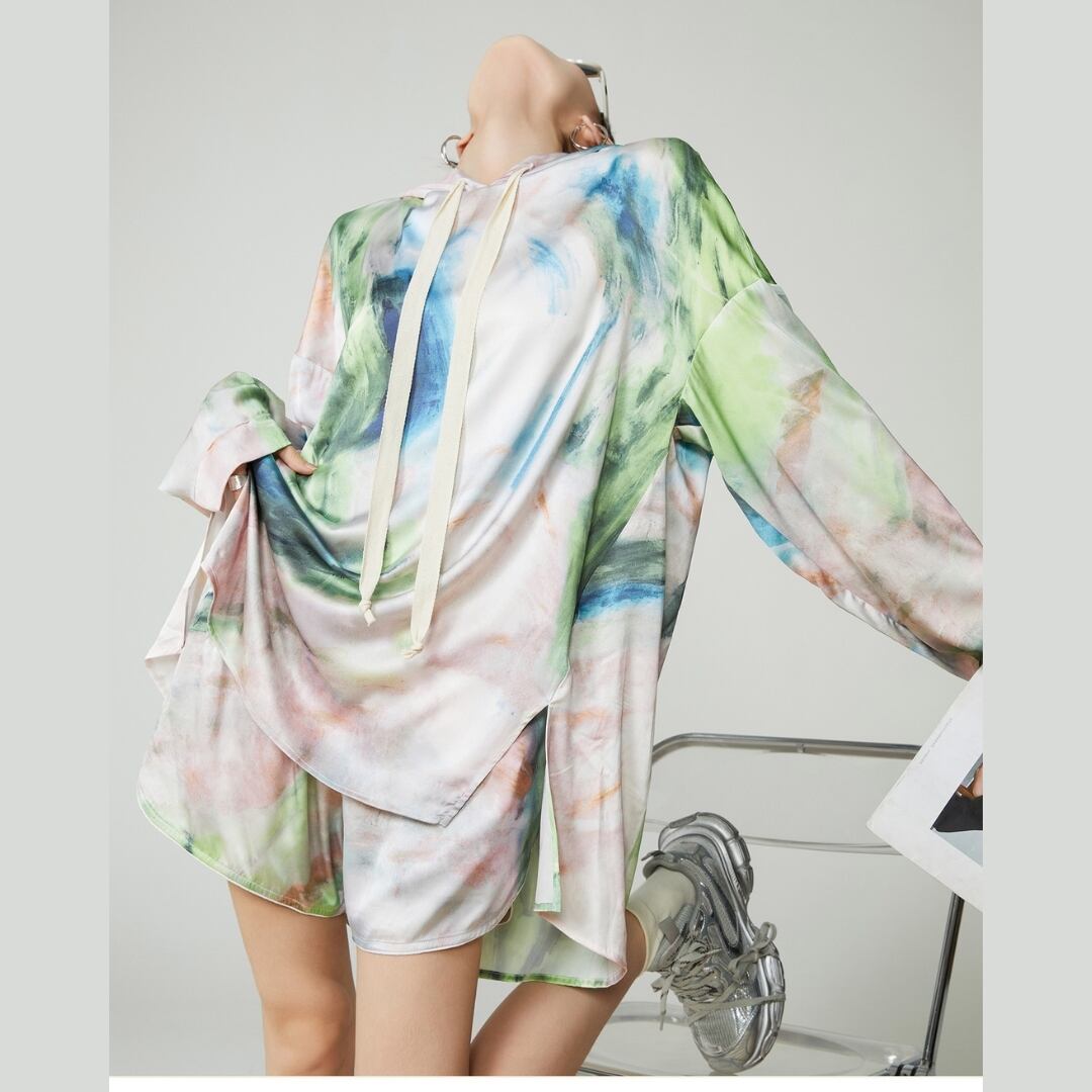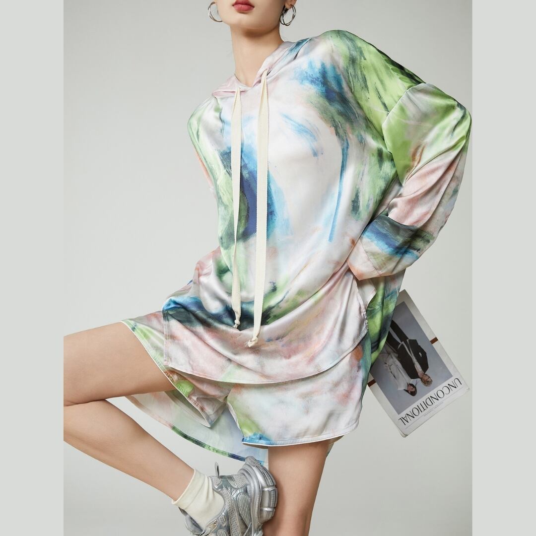 「水彩画のようにまとう」 淡いグリーンやブルー、やわらかなピンクが 水彩タッチで溶け合うアートなフーディセットアップ。 ゆったりとしたシルエットと軽やかな素材感が、 休日のお出かけやリラックスタイムにぴったり。 SIZE: 【S】 トップス:肩幅 -- 胸囲:116cm 着丈:83cm 袖丈:49cm ボトムス:ウエスト:64cm ヒップ:105cm 股下:34cm 【M】 トップス:肩幅 -- 胸囲:120cm 着丈:84cm 袖丈:50cm ボトムス:ウエスト:67.5cm ヒップ:109cm 股下:34.5cm 【L】 トップス:肩幅 -- 胸囲:124cm 着丈:85cm 袖丈:51cm ボトムス:ウエスト:71cm ヒップ:113cm 股下:35cm 【XL】 トップス:肩幅 -- 胸囲:128cm 着丈:86cm 袖丈:52cm ボトムス:ウエスト:74.5cm ヒップ:117cm 股下:35.5cm ※採寸方法により1~3cmの誤差がある場合がございます 素材:ポリエステル モデル情報:身長166cm 着用サイズ M ※IROPHORIAではお客様のご注文を受け1点1点商品を取り寄せしております。そのため、ご入金から発送までに1週間〜3週間前後お時間をいただきます。 余裕をもってのお買い求めをお願い致します。 ✦注意事項✦ ・タイミングによっては 商品在庫切れにより注文キャンセルとさせていただく恐れもございますので、予めご了承くださいませ。 ・海外製品のため日本とは製造基準が異なります。ご理解のうえご購入ください。 ・商品の色味は、お持ちのデバイス画面により実物と若干異なる場合がございます。 ・イメージ違いやサイズ等、お客様都合による交換、返品、キャンセルは対応出来かねます。 —————————————————— ⬇︎ ご購入前にこちらをお読みください https://shop.irophoria.tokyo/about ——————————————————