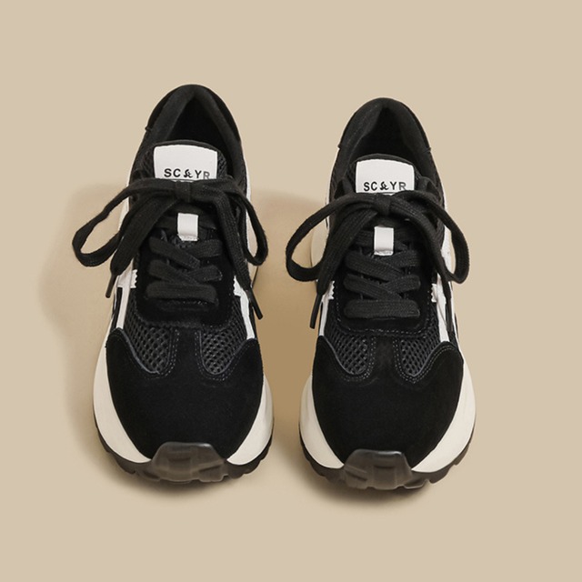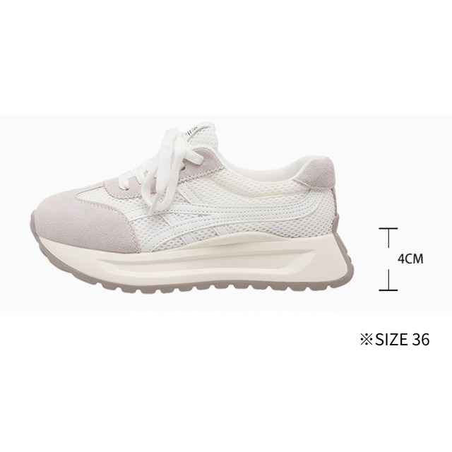 カジュアルにもスポーティにも合わせやすい、メッシュとスエードを組み合わせたスニーカー。通気性と軽やかな履き心地を兼ね備え、デイリーからお出かけまで活躍します。程よいボリューム感のソールがスタイルアップ効果もプラス。 SIZE:34〜40 34インチ(22.0cm) 35インチ(22.5cm) 36インチ(23.0cm) 37インチ(23.5cm) 38インチ(24.0cm) 39インチ(24.5cm) 40インチ(25.0cm) ※足の形にもよりますが、甲の幅の広い方は通常よりもワンサイズ上げてご購入頂くことをお勧めします。 ※採寸方法により若干の誤差がある場合がございます COLOR: 4colors 素材:ポリエステル、ラバーソール ※IROPHORIAではお客様のご注文を受け1点1点商品を取り寄せしております。そのため、ご入金から発送までに1週間〜3週間前後お時間をいただきます。 余裕をもってのお買い求めをお願い致します。 ✦注意事項✦ ・タイミングによっては 商品在庫切れにより 注文キャンセルとさせていただく恐れもございますので、 予めご了承くださいませ。 ・海外製品のため日本とは製造基準が異なります。 ご理解のうえご購入ください。 ・商品の色味は、お持ちのデバイス画面により 実物と若干異なる場合がございます。 ・イメージ違いやサイズ等、お客様都合による交換、返品、 キャンセルは対応出来かねます。 —————————————————— ⬇︎ ご購入前にこちらをお読みください https://shop.irophoria.tokyo/about ——————————————————