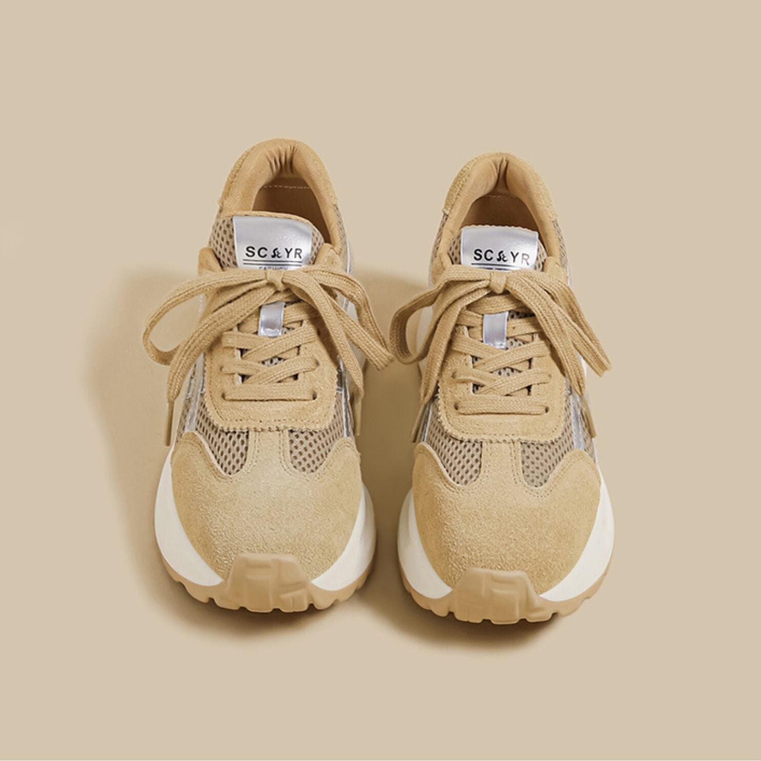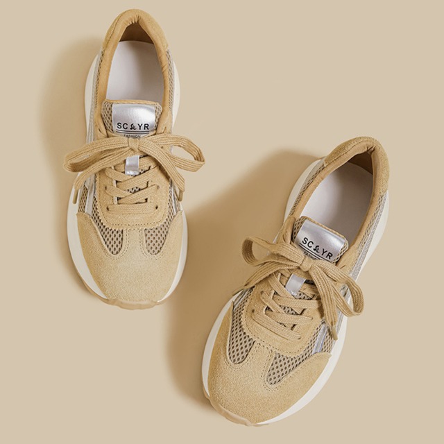 Mesh & Suede Combination Sneakers – 4 Colors BEIGE I25125