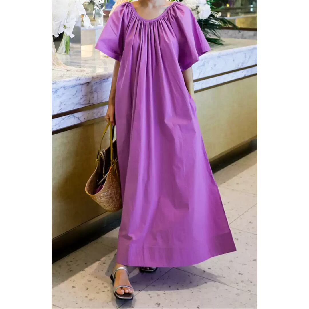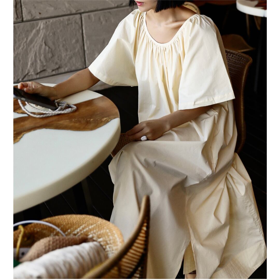 日常に軽やかな風をまとって。 ゆったりとしたシルエットと、動くたびに揺れるドレープが あなたの一日を優しく彩ります。 柔らかなコットン生地が叶える心地よさと、 印象的なカラーバリエーション。 お出かけにも、リラックスタイムにも。 SIZE: S:胸囲 104cm 着丈 115cm M:胸囲 108cm 着丈 116cm L:胸囲 112cm 着丈 117cm XL:胸囲 116cm 着丈 118cm ※採寸方法により1~3cmの誤差がある場合がございます COLOR:2colors ※PURPLEの色は写真より少し濃い紫となっております。 ご了承いただいた上でのご購入をお願いします。 素材:綿100% ※IROPHORIAではお客様のご注文を受け1点1点商品を取り寄せしております。そのため、ご入金から発送までに1週間〜3週間前後お時間をいただきます。 余裕をもってのお買い求めをお願い致します。 ✦注意事項✦ ・タイミングによっては 商品在庫切れにより注文キャンセルとさせていただく恐れもございますので、予めご了承くださいませ。 ・海外製品のため日本とは製造基準が異なります。ご理解のうえご購入ください。 ・商品の色味は、お持ちのデバイス画面により実物と若干異なる場合がございます。 ・イメージ違いやサイズ等、お客様都合による交換、返品、キャンセルは対応出来かねます。 —————————————————— ⬇︎ ご購入前にこちらをお読みください https://shop.irophoria.tokyo/about ——————————————————