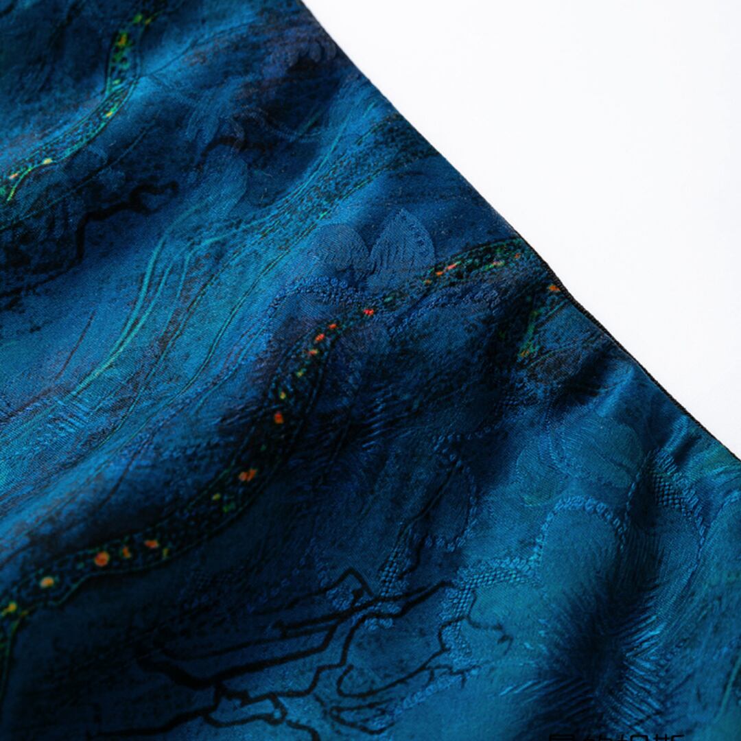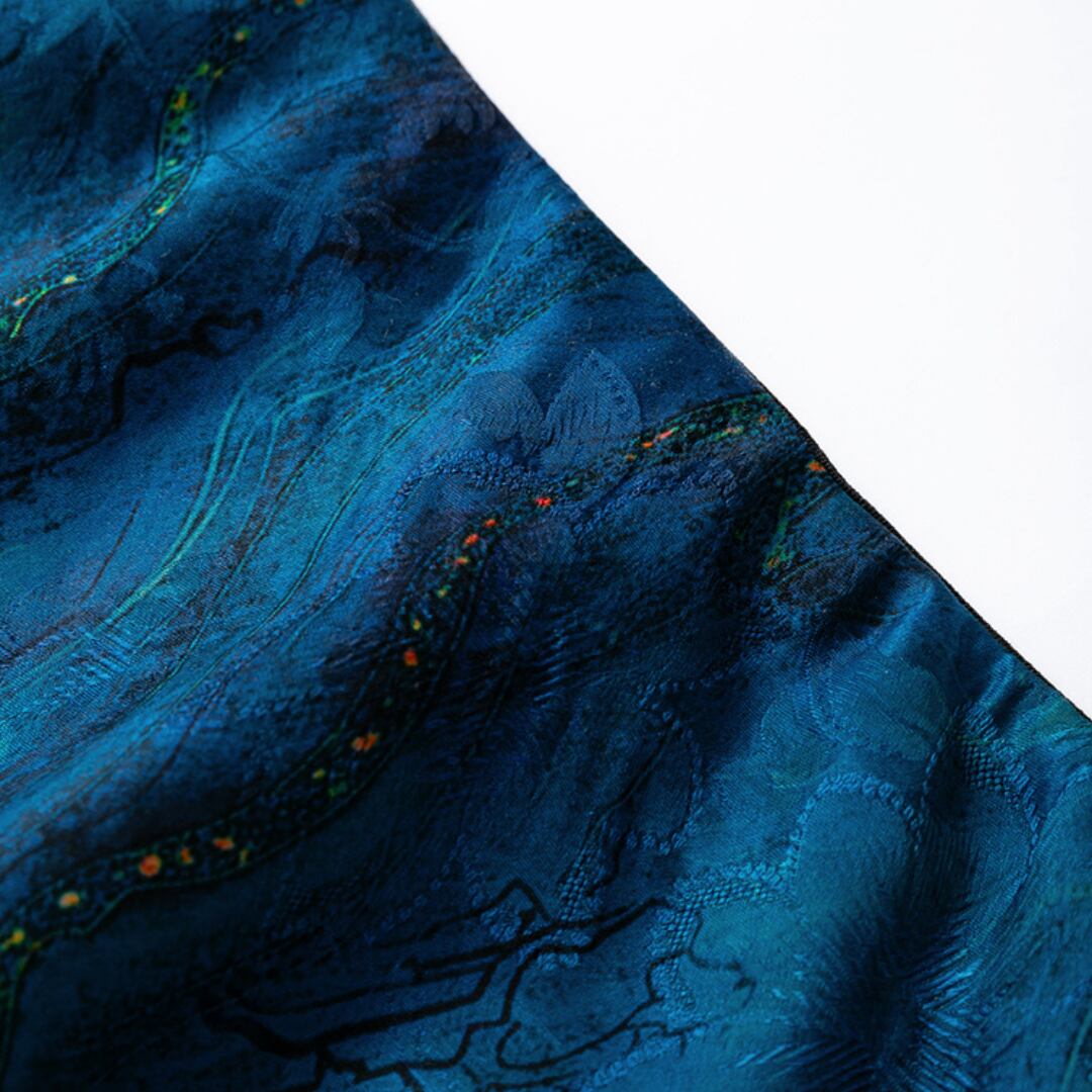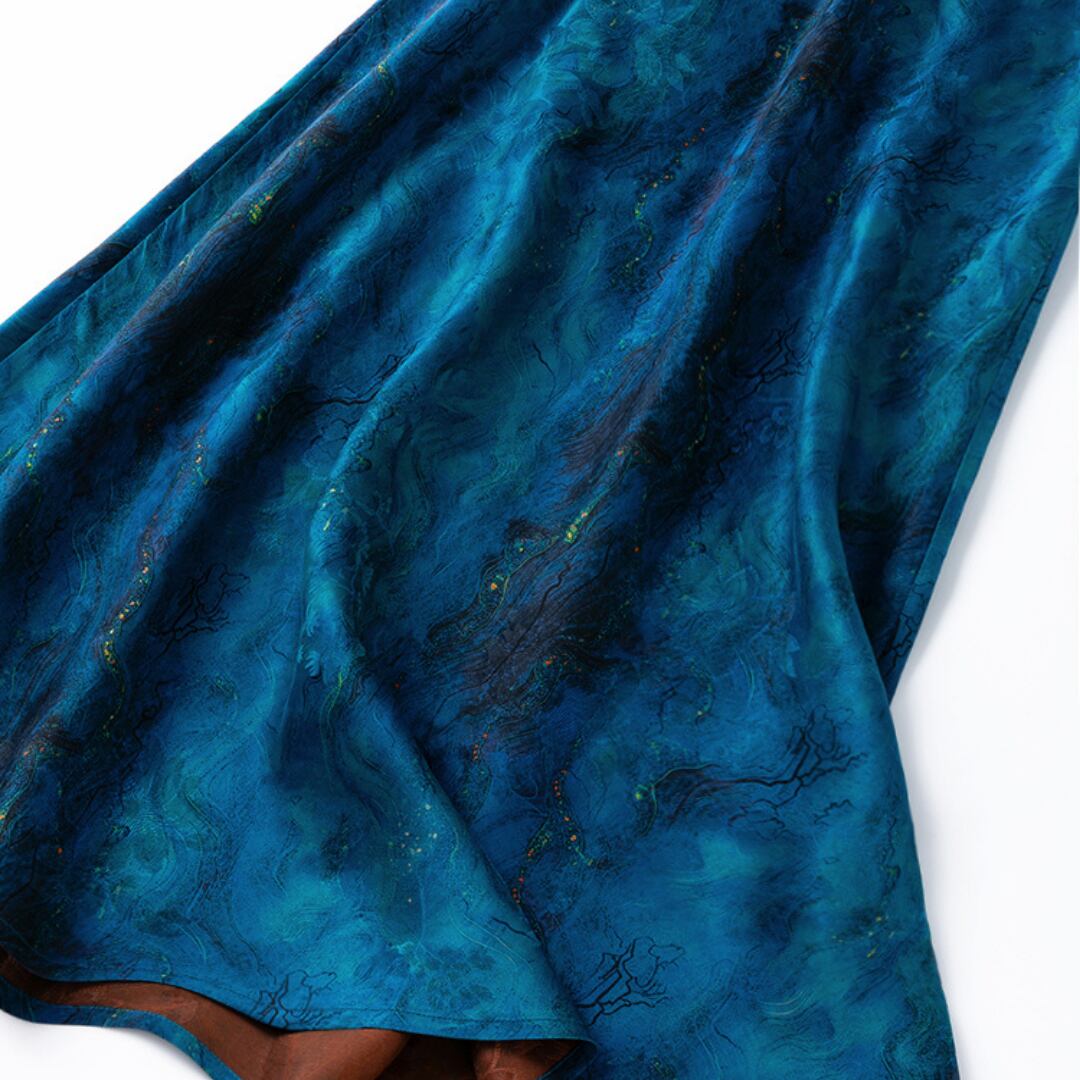 シルク特有のなめらかな光沢と、奥行きのあるブルーが