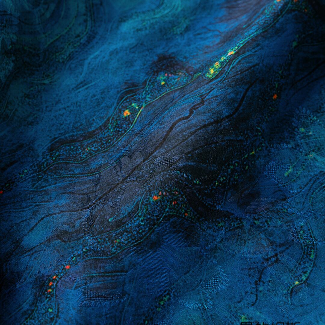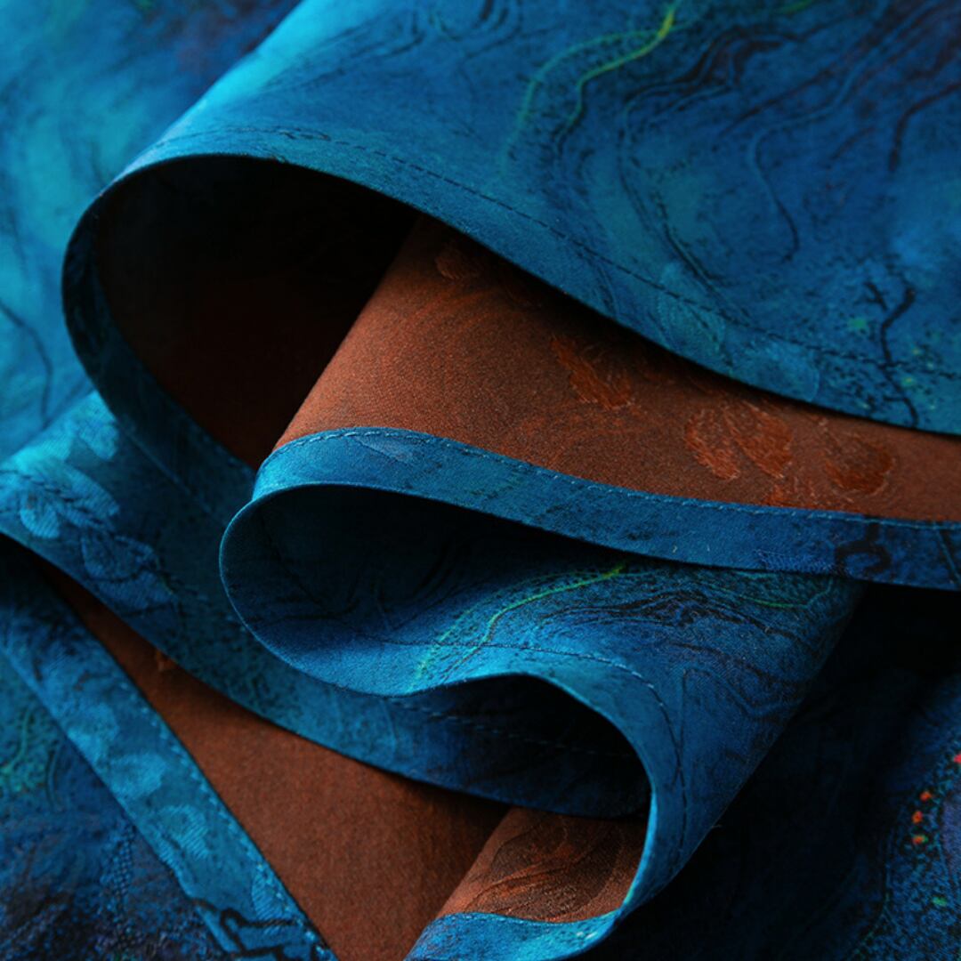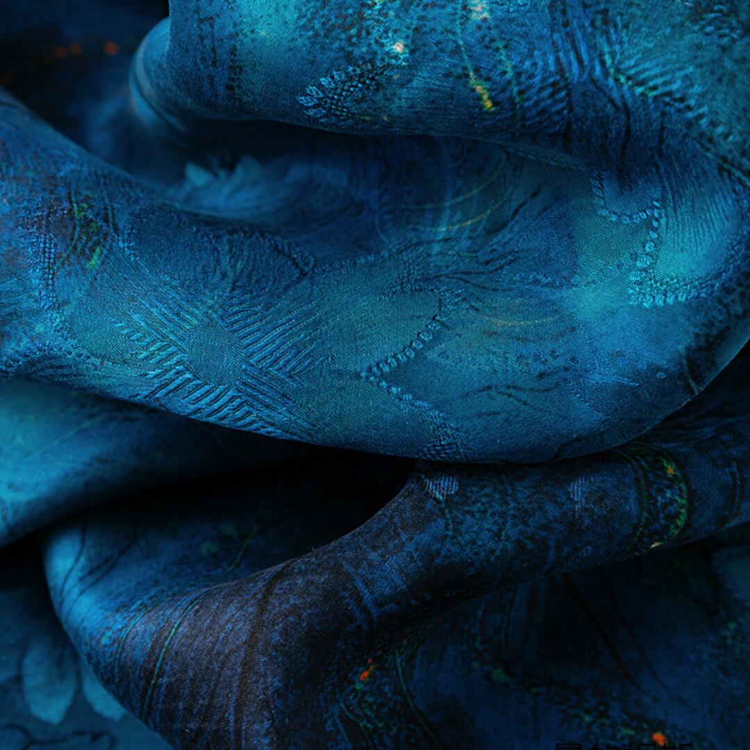 シルク特有のなめらかな光沢と、奥行きのあるブルーが