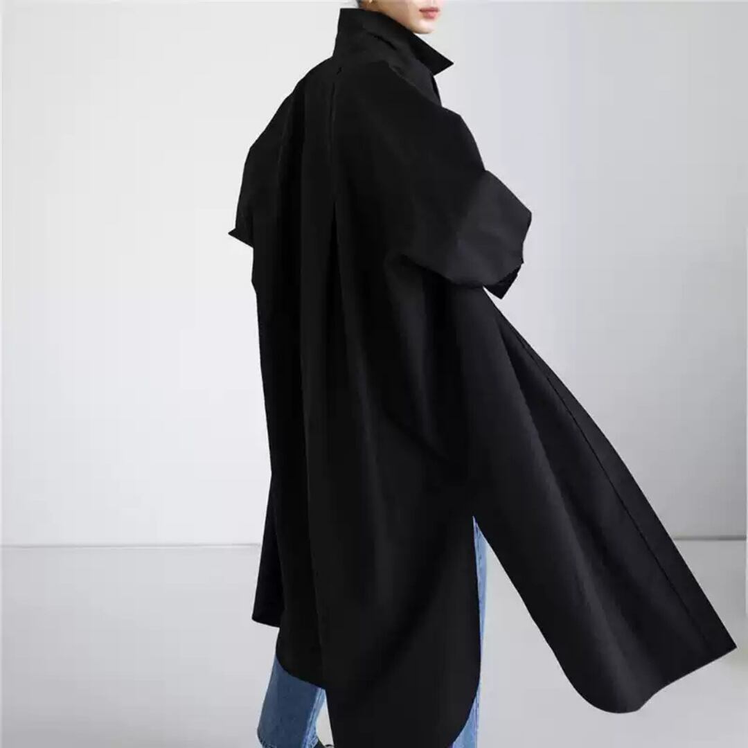 サイドスリットの動きが魅力のロングシャツドレス。