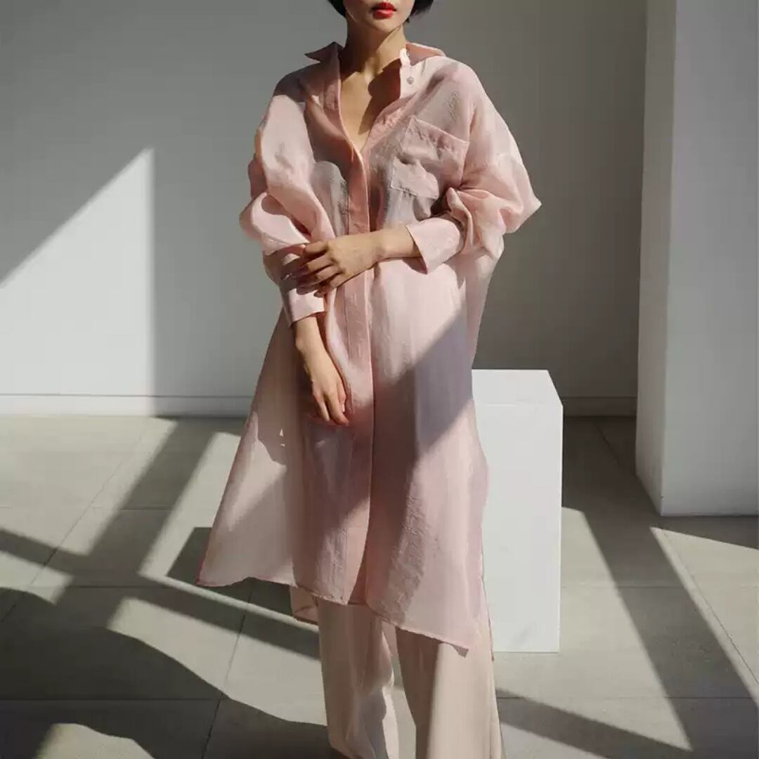 Soft Drape Long Shirt Dress_PINK I25141