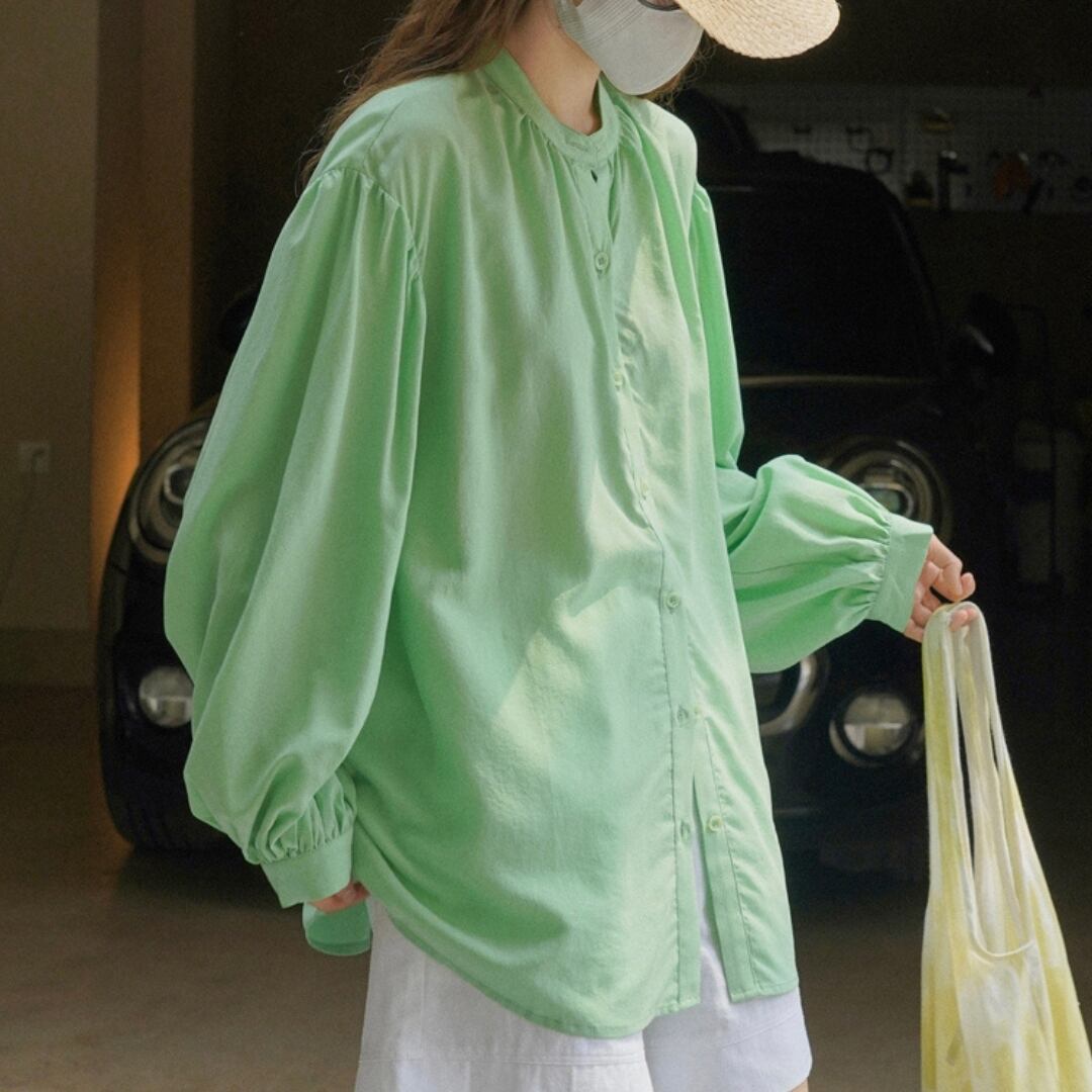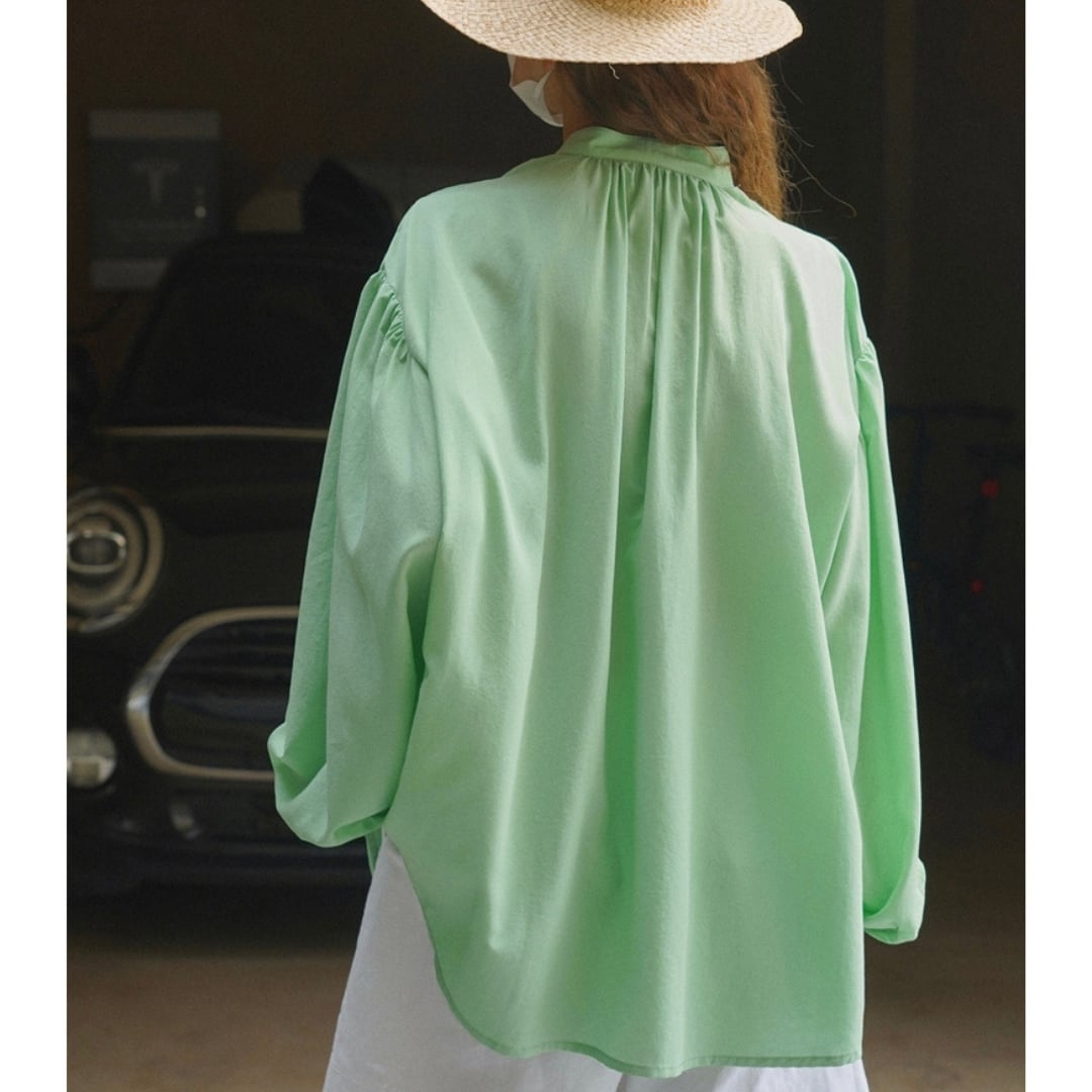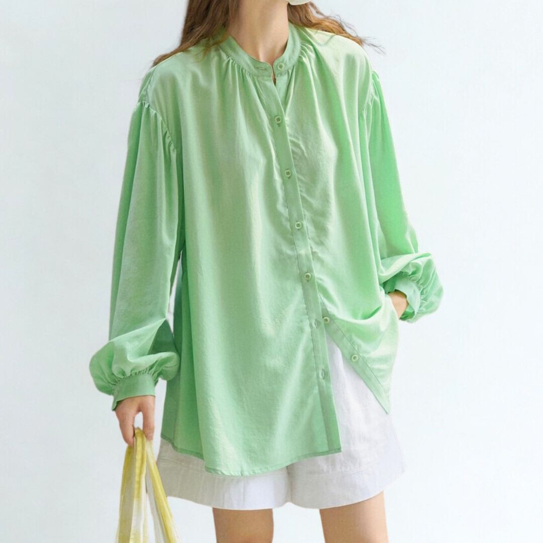 たっぷりとしたバルーンスリーブが、さりげなく腕を包み込み、
