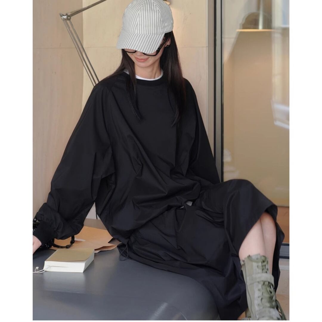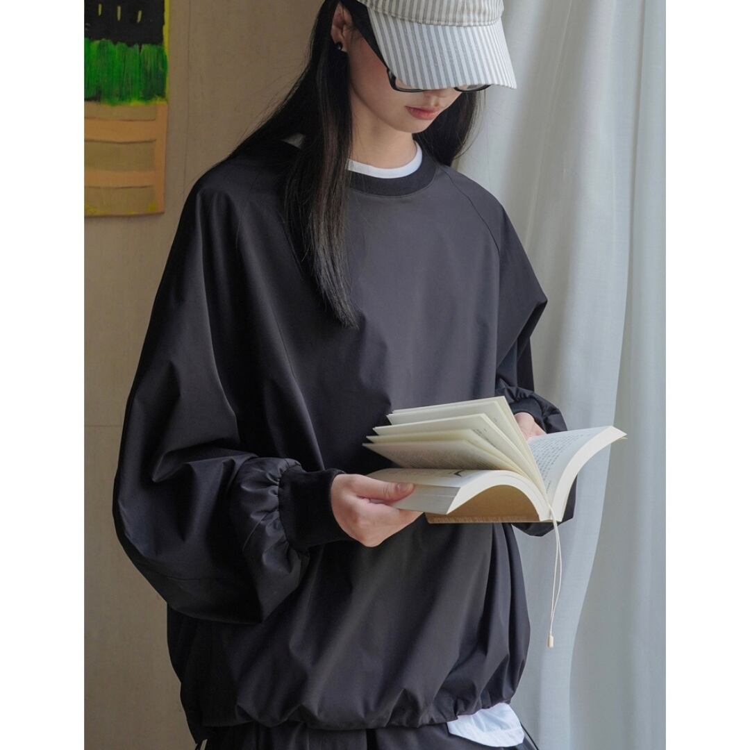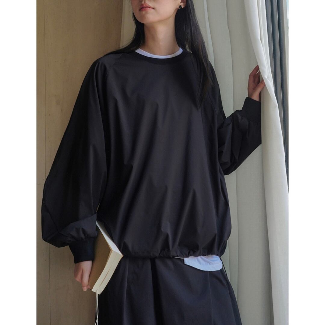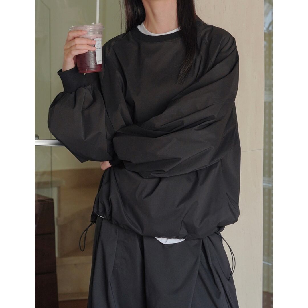裾のドローストリングでシルエットに変化をつければ、
