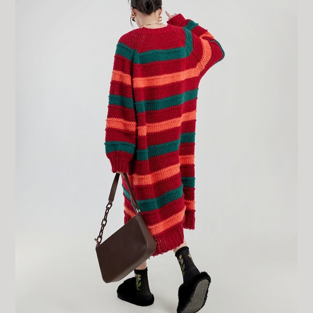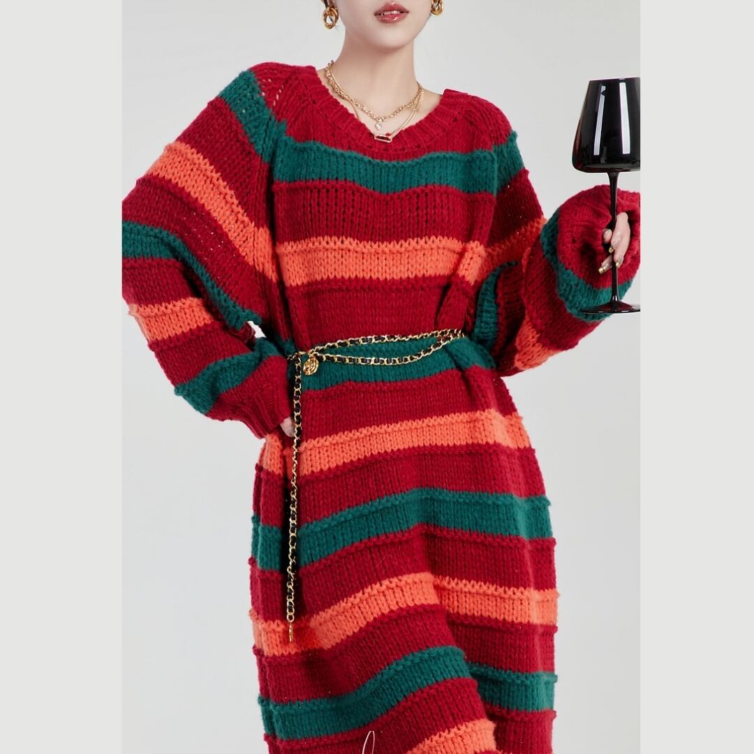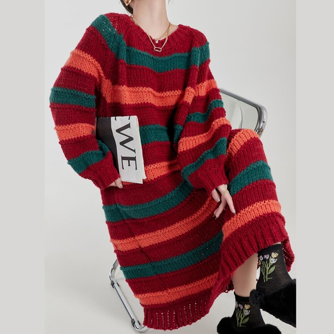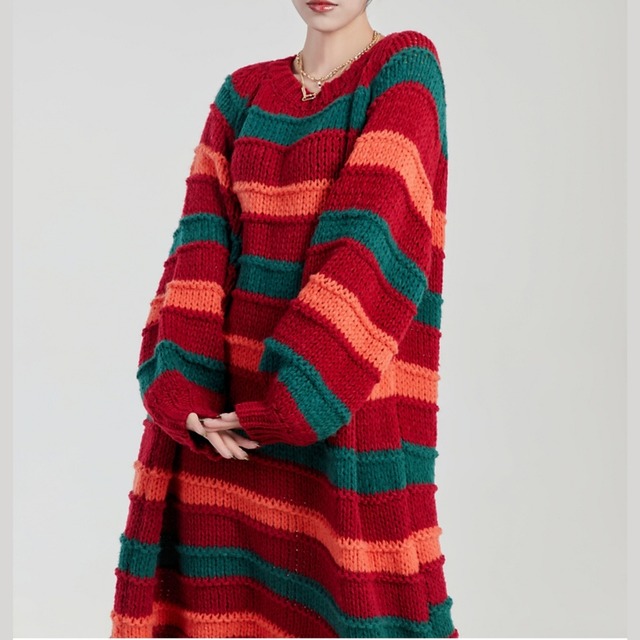 大胆なマルチカラーボーダーが目を惹く、ニットワンピース。 深みのあるレッド・グリーン・オレンジの絶妙な配色は、着るだけでスタイルの主役に。 ゆったりシルエット×ゴールドチェーンベルトで、抜け感と高級感を両立。 カジュアルからモードまで、幅広いコーデに映える一着です。 アートをまとうような、自由な着こなしを楽しんで。 SIZE: 【S】肩幅:71cm 胸囲:132cm 着丈:95cm 【M】肩幅:72cm 胸囲:136cm 着丈:96cm 【L】肩幅:73cm 胸囲:140cm 着丈:97cm ※採寸方法により1~3cmの誤差がある場合がございます 素材: モデル情報:身長167cm 着用サイズ M ※IROPHORIAではお客様のご注文を受け1点1点商品を取り寄せしております。そのため、ご入金から発送までに1週間〜3週間前後お時間をいただきます。 余裕をもってのお買い求めをお願い致します。 ✦注意事項✦ ・タイミングによっては 商品在庫切れにより注文キャンセルとさせていただく恐れもございますので、予めご了承くださいませ。 ・海外製品のため日本とは製造基準が異なります。ご理解のうえご購入ください。 ・商品の色味は、お持ちのデバイス画面により実物と若干異なる場合がございます。 ・イメージ違いやサイズ等、お客様都合による交換、返品、キャンセルは対応出来かねます。 —————————————————— ⬇︎ ご購入前にこちらをお読みください https://shop.irophoria.tokyo/about ——————————————————