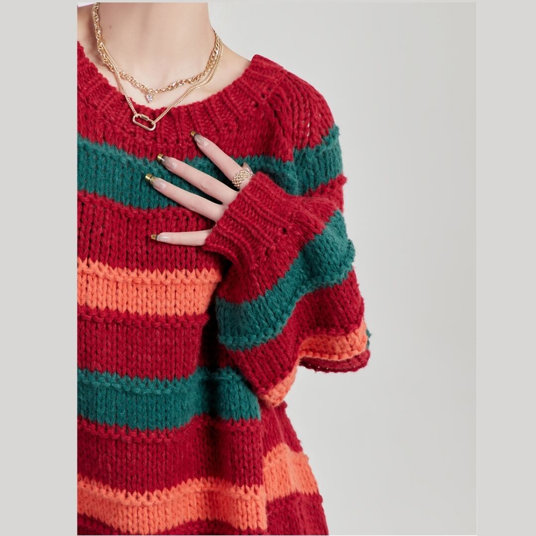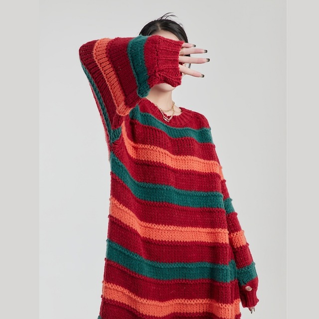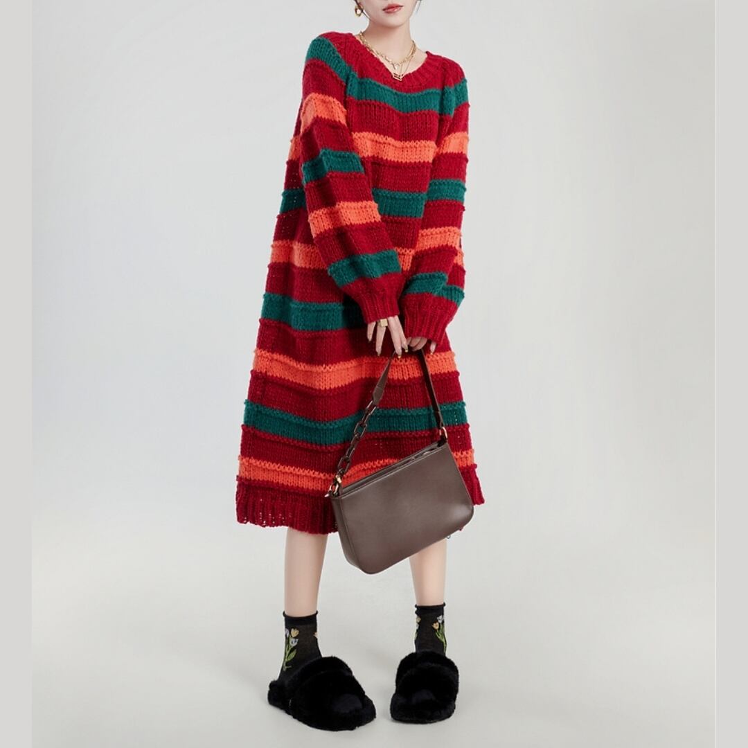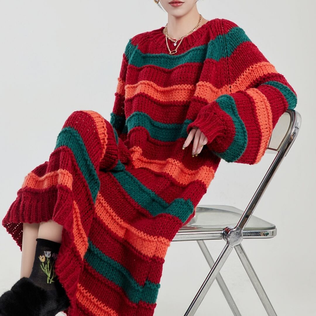 大胆なマルチカラーボーダーが目を惹く、ニットワンピース。 深みのあるレッド・グリーン・オレンジの絶妙な配色は、着るだけでスタイルの主役に。 ゆったりシルエット×ゴールドチェーンベルトで、抜け感と高級感を両立。 カジュアルからモードまで、幅広いコーデに映える一着です。 アートをまとうような、自由な着こなしを楽しんで。 SIZE: 【S】肩幅:71cm 胸囲:132cm 着丈:95cm 【M】肩幅:72cm 胸囲:136cm 着丈:96cm 【L】肩幅:73cm 胸囲:140cm 着丈:97cm ※採寸方法により1~3cmの誤差がある場合がございます 素材: モデル情報:身長167cm 着用サイズ M ※IROPHORIAではお客様のご注文を受け1点1点商品を取り寄せしております。そのため、ご入金から発送までに1週間〜3週間前後お時間をいただきます。 余裕をもってのお買い求めをお願い致します。 ✦注意事項✦ ・タイミングによっては 商品在庫切れにより注文キャンセルとさせていただく恐れもございますので、予めご了承くださいませ。 ・海外製品のため日本とは製造基準が異なります。ご理解のうえご購入ください。 ・商品の色味は、お持ちのデバイス画面により実物と若干異なる場合がございます。 ・イメージ違いやサイズ等、お客様都合による交換、返品、キャンセルは対応出来かねます。 —————————————————— ⬇︎ ご購入前にこちらをお読みください https://shop.irophoria.tokyo/about ——————————————————