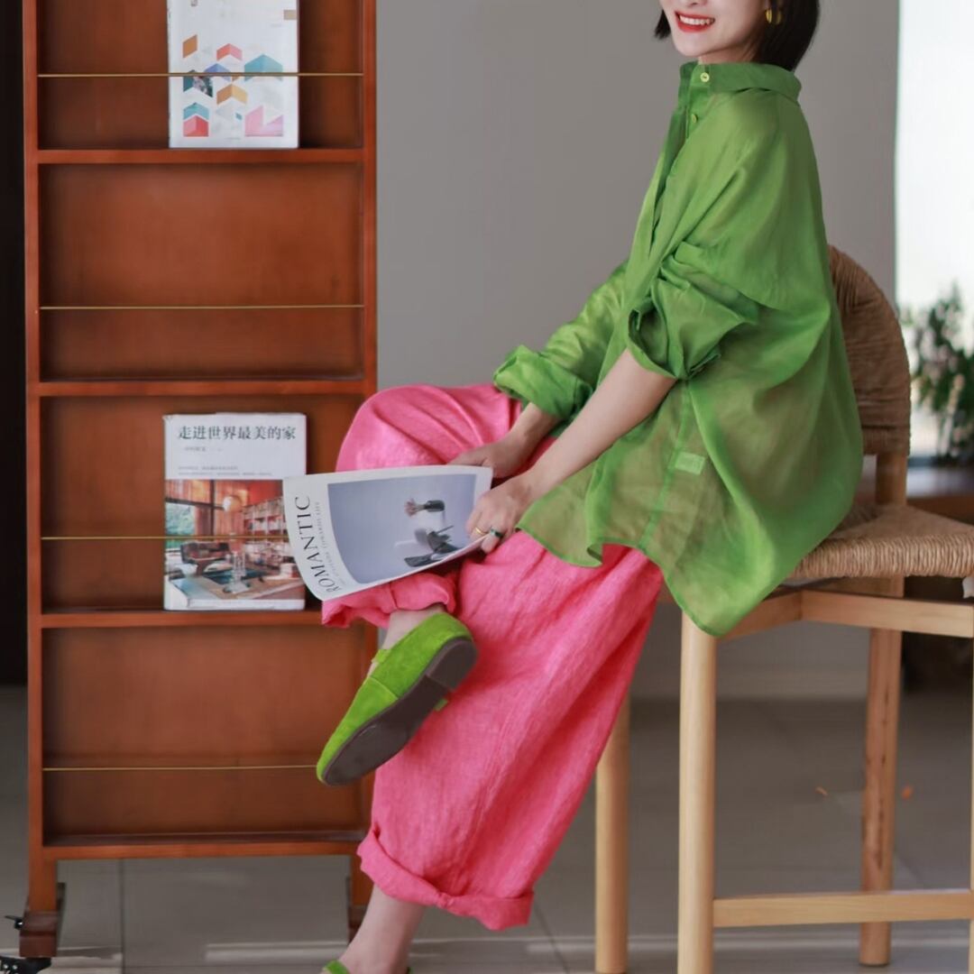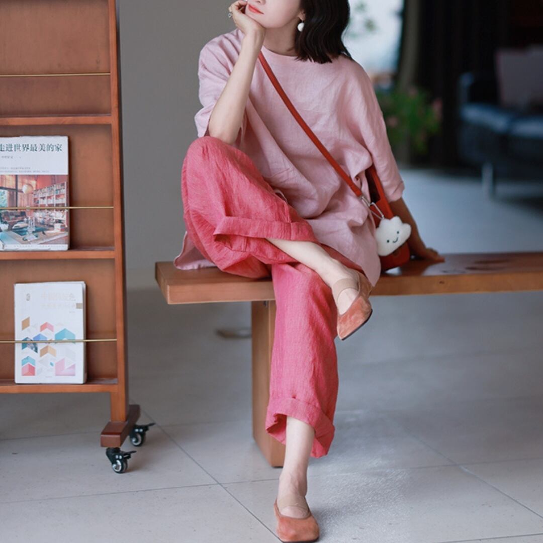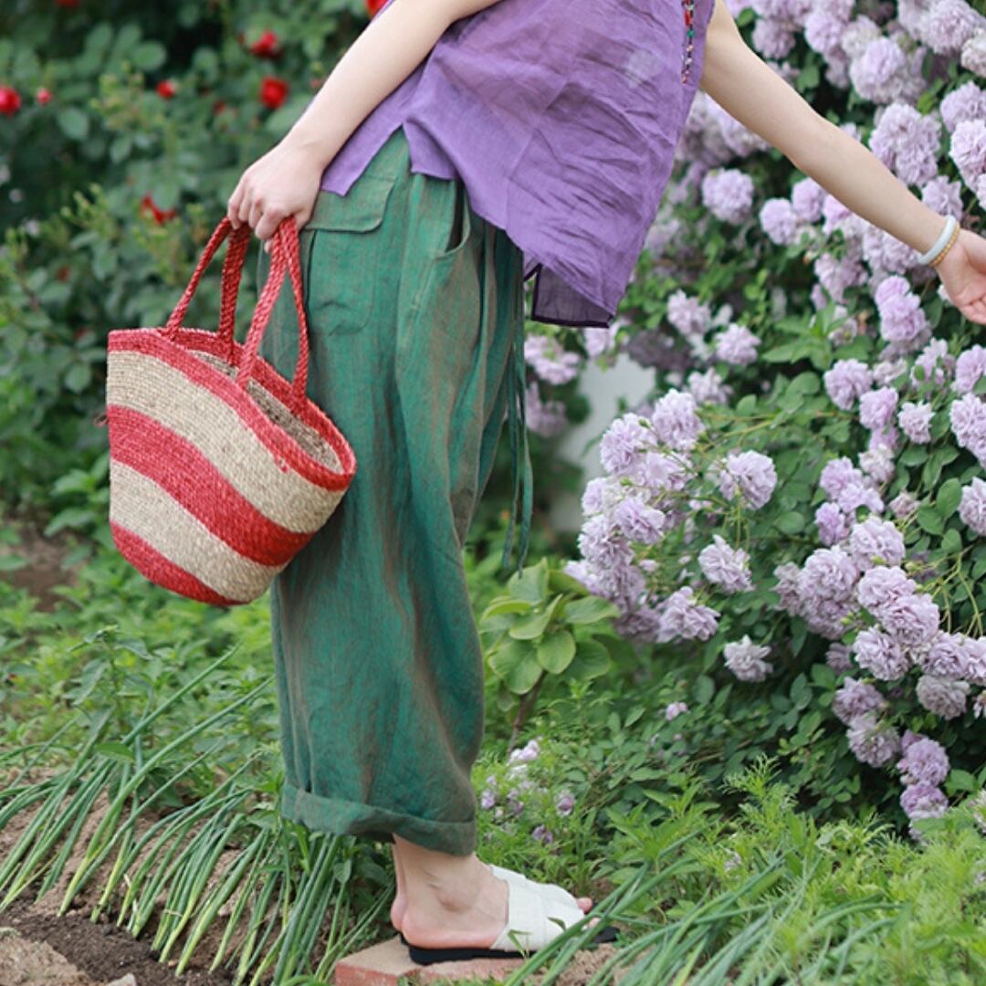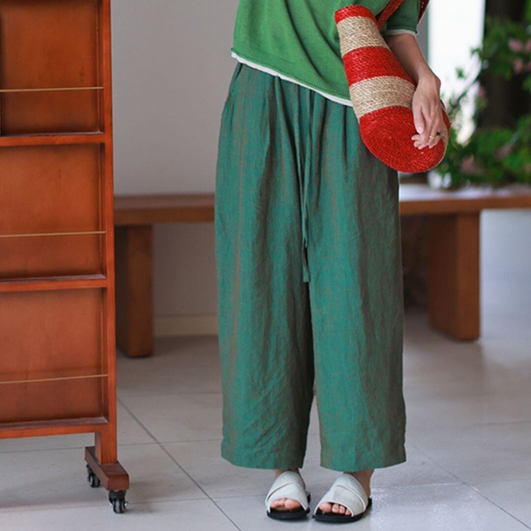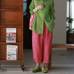 土と風のあいだに生まれる、やわらかなリズム。 くったりとしたリネンの質感に、 空気をふくんだようなワイドシルエット。 足を通した瞬間、ふっと心がほどけて 自然のなかへと還っていくような気持ちに。 色は、花のようにやさしく 森のように深く。 自分の“いま”に寄り添う一本です。 SIZE: 【M】 ウエスト:62〜82cm パンツ丈:87cm ヒップ:132cm 裾まわり:54cm 【L】 ウエスト:66〜86cm パンツ丈:89cm ヒップ:137cm 裾まわり:56cm ※採寸方法により1~3cmの誤差がある場合がございます COLOR: PINK / GREEN 素材:リネン100% ※モデル身長165cm/体重55kg ※光や角度によって見え方が異なる場合があります。 ※IROPHORIAではお客様のご注文を受け1点1点商品を取り寄せしております。そのため、ご入金から発送までに1週間〜3週間前後お時間をいただきます。 余裕をもってのお買い求めをお願い致します。 ✦注意事項✦ ・タイミングによっては 商品在庫切れにより注文キャンセルとさせていただく恐れもございますので、予めご了承くださいませ。 ・海外製品のため日本とは製造基準が異なります。ご理解のうえご購入ください。 ・商品の色味は、お持ちのデバイス画面により実物と若干異なる場合がございます。 ・イメージ違いやサイズ等、お客様都合による交換、返品、キャンセルは対応出来かねます。 —————————————————— ⬇︎ ご購入前にこちらをお読みください https://shop.irophoria.tokyo/about ——————————————————