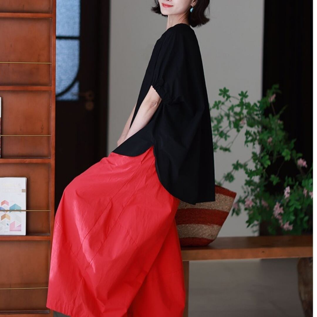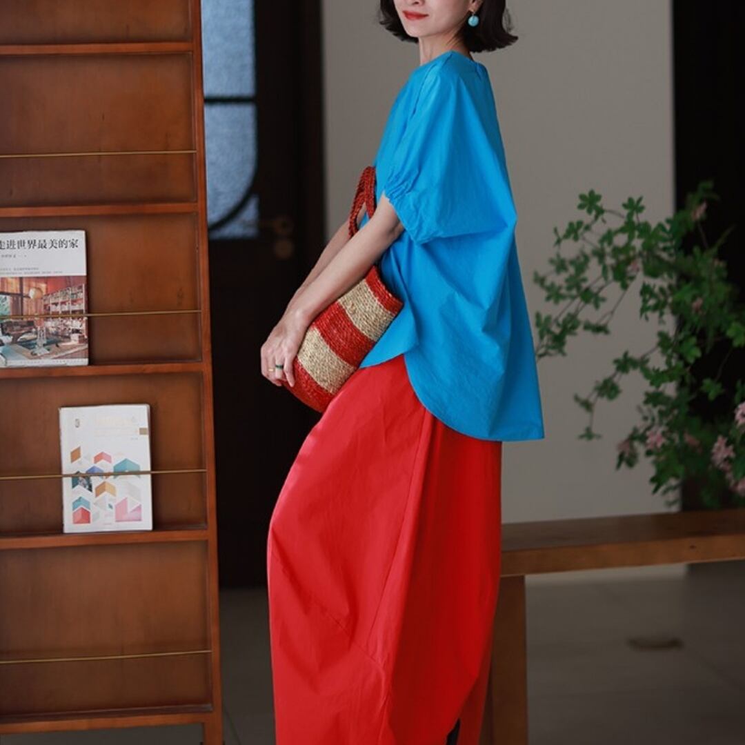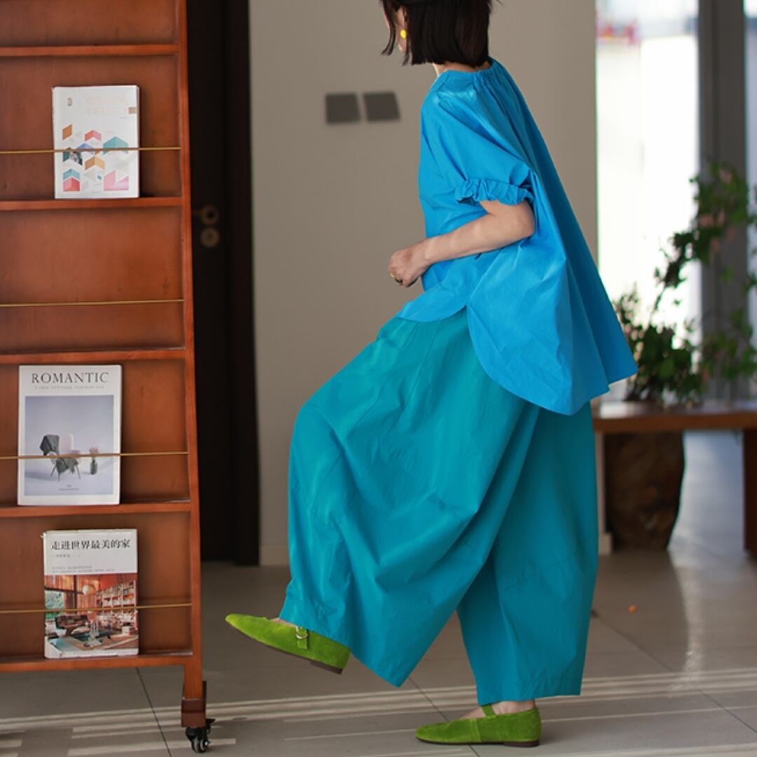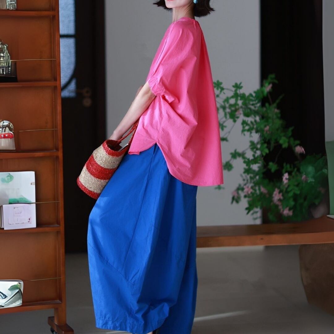色で、気分を変える。 ふわりと風をまとったような、リズムあるシルエット。 ゆったりとした身頃と、ほんのり丸みを帯びた袖が 何気ない日常にも、さりげない個性を運んでくれます。 ネックラインには、小さなフリルの遊び心を。 シンプルだけれど、どこか記憶に残るデザイン。 ベーシックカラーで穏やかに、 ビビッドカラーで自分らしく。 SIZE: 【F】 胸囲:136cm 肩袖丈:34cm 着丈:前68cm/後75cm 袖口:34cm ※採寸方法により1~3cmの誤差がある場合がございます COLOR:5colors BLUE / PINK / YELLOW WHITE / BLACK 素材:コットン100% ※光の加減やモニターにより色味が異なる場合があります。 ※色移り防止のため、単独での冷水手洗いをおすすめします。 ※直射日光を避け、陰干ししてください。 ※モデル身長165cm/体重55kg ※IROPHORIAではお客様のご注文を受け1点1点商品を取り寄せしております。そのため、ご入金から発送までに1週間〜3週間前後お時間をいただきます。 余裕をもってのお買い求めをお願い致します。 ✦注意事項✦ ・タイミングによっては 商品在庫切れにより注文キャンセルとさせていただく恐れもございますので、予めご了承くださいませ。 ・海外製品のため日本とは製造基準が異なります。ご理解のうえご購入ください。 ・商品の色味は、お持ちのデバイス画面により実物と若干異なる場合がございます。 ・イメージ違いやサイズ等、お客様都合による交換、返品、キャンセルは対応出来かねます。 —————————————————— ⬇︎ ご購入前にこちらをお読みください https://shop.irophoria.tokyo/about ——————————————————